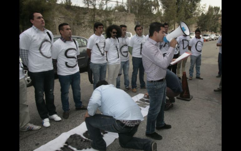 Jalisco | Jóvenes universitarios pidieron al Tribunal de lo Administrativo agilizar amparo La FEU se manifiesta en el TAE Jóvenes universitarios pidieron al Tribunal de lo Administrativo agilizar proceso de amparo Por: EL INFORMADOR 20 de marzo de 2013 - 14:16 hs Se plantaron justo afuera del edificio del Tribunal de lo Administrativo del Estado de Jalisco, ubicado en la calle Jesús García. / GUADALAJARA, JALISCO (20/MAR/2013).- Este mediodía la Federación de Estudiantes Universitarios (FEU) se plantó justo afuera del edificio del Tribunal de lo Administrativo del Estado de Jalisco, ubicado en la calle Jesús García. Alrededor de una treintena de jóvenes universitarios, liderados por el presidente de dicha federación, Marco Antonio Núñez Becerra, se presentaron a las afueras de dicho edificio, advirtiendo con la frase "los estamos vigilando", pintada en playeras que los mismos inconformes portaban. El líder universitario demandó que el Tribunal de lo Administrativo está retrasando el proceso para que se lleve hasta la autoridad federal el amparo que la FEU interpuso para evitar el alza en el precio del transporte público. "Justicia retrasada es justicia denegada", exclamó Núñez Becerra, al referir que ya transcurrió más de un mes y que el TAE no ha llevado dicho amparo. "No nos vamos a dejar; parece ilógico que una cosa tan sencilla como llevar un documento a un lugar que no debe estar más lejos de cinco kilómetros, no lo hagan. Trajimos a la sociedad para que sepan que los estamos vigilando y que no son intocables", enfatizó el dirigente de la FEU. Núñez Becerra hizo entrega de una carta a manera de recomendación al TAE, donde exigen se entregue dicho amparo. EL INFORMADOR / ÉDGAR FLORES Temas Manifestaciones en Jalisco Vialidad FEU TAE Lee También ¡No te las pierdas! En esta fecha se terminan las Fiestas de Octubre Alerta por presencia de oruga peluche: ¿en qué estados hay? Anuncian escuelas de tiempo completo en Jalisco Dónde ver EN VIVO Charros de Jalisco vs Águilas de Mexicali por la LMP 2025 Recibe las últimas noticias en tu e-mail Todo lo que necesitas saber para comenzar tu día Registrarse implica aceptar los Términos y Condiciones
