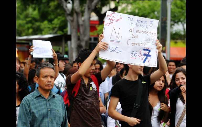 Jalisco | La manifestación se realizará este lunes informaron fuentes académicas La FEU y la UdeG alistan marcha contra transporte La manifestación se realizará este lunes informaron fuentes académicas Por: EL INFORMADOR 9 de marzo de 2014 - 18:21 hs La manifestación es para protestar por las malas condiciones del transporte público. / GUADALAJARA, JALISCO (09/MAR/2014).- Tras el anuncio del gobernador Aristóteles Sandoval Díaz de suspender la tarifa de 7 de pesos del transporte público, la Federación de Estudiantes Universitarios ( FEU) y la Universidad de Guadalajara ( UdeG) no cambian sus planes de manifestarse en contra de los transportistas y el gobierno del estado a raíz de la muerte de María Fernanda Vázquez Vázquez y las lesiones que sufrieron otros estudiantes de la preparatoria número 10 por una imprudencia de un chofer de la ruta 368. El presidente de la FEU, Alberto Galarza confirmó la realización de la protesta de la comunidad universitaria, la cual dijo está "dolida, triste y enojada por haber perdido la vida de una compañera y por las lesiones que sufrieron otros tantos". "La marcha de mañana es una marcha de indignación y descontento contra los responsables y desgraciadamente hay corresponsables, no sólo un responsable, en este caso son gobierno y transportistas", remarcó el líder estudiantil. En total serán cuatro los contingentes que saldrán a manifestarse, se reunirán en la Plaza de la Liberación al terminar su recorrido. Los contingentes partirán a las 10:00 horas de: Fuente Olímpica (Calzada Independencia y Monte Cáucaso). Glorieta de la Normal (Avenida Alcalde y Ávila Camacho). Rectoría General (Avenida Juárez y Enrique Díaz de León). Plaza de la Bandera Bulevard Marcelino García Barragán y Calzada del Ejército. A propósito de dicha protesta pacífica, el rector de la UdeG, Tonatiuh Bravo, señala que las clases de todos los centros universitarios y preparatorias serán de 7 a 9 de la mañana, y a partir de esta hora se supenden para que alumnos y profesores puedan asistir a la marcha, reanudando las clases a las 2 de la tarde. La manifestación también está siendo apoyada en redes sociales, con los hashtags #TodosSomosPrepa10 y #justiciaprepa10. Galarza lamentó que el gobernador Aristóteles Sandoval Díaz tome la decisión de revocar el aumento al pasaje hasta ahora, que un miembro de la comunidad universitaria perdió la vida. "Es muy triste que las mejores decisiones del estado se tomen bajo estas circunstancias", manifestó. El líder estudiantil estimó una participación de 10 mil estudiantes principalmente de la Zona Metropolitana de Guadalajara en la manifestación que se realizará este lunes. EL INFORMADOR / GEORGINA GARCÍA Temas Manifestaciones en Jalisco Transporte Público FEU Centro Cultural Universitario UDG Lee También Policías de Tlaquepaque aseguran contenedores con carga millonaria Lluvia caerá en Guadalajara; ¿afectará tormenta "Raymond"? Abogado de presunta víctima espera vinculación a proceso de Omar "N" Así luce Cihuatlán ante el paso de la tormenta tropical "Raymond" (VIDEO) Recibe las últimas noticias en tu e-mail Todo lo que necesitas saber para comenzar tu día Registrarse implica aceptar los Términos y Condiciones