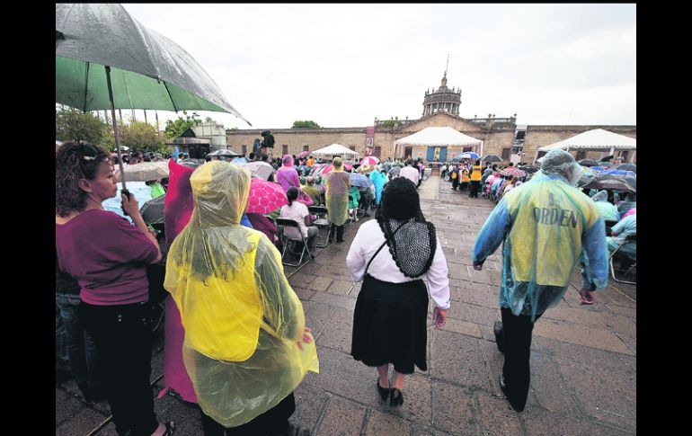 Jalisco | Inician las actividades de la Romería 2012 ''La Generala'' cumple: lluvia le da la bienvenida a la Romería Con una misa en la Explanada del Instituto Cabañas dan inicio las actividades de la Romería 2012 Por: EL INFORMADOR 12 de octubre de 2012 - 03:03 hs Fervor religioso. Miles de fieles acompañan a la Virgen de Zapopan que deja Guadalajara para regresar a su hogar, la Basílica. / GUADALAJARA, JALISCO (12/OCT/2012).- La Virgen de Zapopan no falla: después de varios días sin lluvias, el miércoles hubo un chubasco sobre Guadalajara y ayer jueves, una lluvia más consistente que obligó a sacar los paraguas durante la Misa del Patrocinio, en la Explanada del Instituto Cabañas, y durante el recorrido a la Catedral. Comenzaron así las actividades formales de la Romería de 2012, que, según las autoridades locales, podrían convocar a lo largo de este viernes hasta a dos millones de personas, para acompañar a “La Generala” desde el Centro tapatío hasta su hogar, la Basílica en Zapopan. Aunque no lleguen a ser dos millones —si se calculan cuatro personas por metro cuadrado, rondarán las 300 mil personas en la congregación—, la Romería hará sentir sus efectos todo el día. La concentración de comerciantes que comenzó desde ayer en ambos centros urbanos comenzó desde el mediodía y obligó a inaugurar los operativos policiales, sin que se reportaran problemas hasta anoche. Mientras tanto, la Secretaría de Educación Jalisco hizo oficial la suspensión de clases para el día de hoy, para alumnos y administrativos de educación básica en la Zona Metropolitana. La Universidad de Guadalajara (UdeG) también dará el día a su comunidad estudiantil, pero, en su caso, por conmemorar el aniversario 87 de su fundación. En la misa frente al Cabañas, el obispo auxiliar, Leopoldo González González, encomendó a “La Generala” los trabajos del Año de la Fe, que arrancó en conmemoración de los 50 años del Concilio Vaticano II. La lluvia se hizo sentir tanto al inicio como al final de la asamblea eucarística, que concentró a unos cinco mil asistentes, según Protección Civil de Jalisco. La procesión de la imagen fue custodiada por la Policía tapatía y elementos antimotines del Estado. Y la venta de paraguas e impermeables, así como diversas golosinas, estuvo a la orden del día, algo por lo cual los comerciantes ambulantes dieron las gracias a la infalible “Generala”. Temas Iglesia Católica en Jalisco Municipios Virgen de Zapopan EL TEMA INFORMADOR Romería 2012 Lee También Morena Jalisco respalda Reforma Judicial Comienza en Jalisco la Campaña Nacional de Vacunación de invierno Charros de Jalisco buscará frenar su racha negativa en juegos inaugurales de la LMP Autos con estas placas deben realizar la Verificación Vehicular antes del 31 de octubre Recibe las últimas noticias en tu e-mail Todo lo que necesitas saber para comenzar tu día Registrarse implica aceptar los Términos y Condiciones