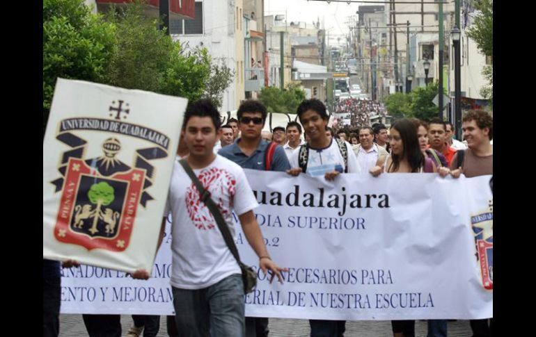 Jalisco | El STAUdeG adelanta que serán acciones ''más enérgicas'' La UdeG retoma protestas frente a Casa Jalisco Integrantes de los seis centros universitarios de la ciudad se manifestarán en punto de las 10:00 horas Por: EL INFORMADOR 1 de diciembre de 2010 - 04:45 hs Imagen de una de las manifestaciones que se han realizado para la exigencia de más presupuesto para la UdeG. EL INFORMADOR / - Retoman manifestaciones de la UdeG;advierten que serán más enérgicasGUADALAJARA, JALISCO (01/DIC/2010).- Al no alcanzar un acuerdo económico con el Gobierno de Jalisco, la Universidad de Guadalajara (UdeG) inicia este día una nueva etapa de protestas para exigir el pago de 701 millones de pesos que se adeudan a la institución; se trata de la anunciada “resistencia civil pacífica”. A las 10:00 horas, integrantes de los seis centros universitarios de la UdeG que se localizan en la ciudad regresarán a manifestarse a las afueras de Casa Jalisco, informó el Sindicato de Trabajadores Académicos de la Universidad (STAUdeG). Además, aunque no fue dada a conocer la hora de la concentración, otro grupo de universitarios acudirá a protestar a Palacio de Gobierno, en el Centro tapatío. Aunque no se difundieron los actos concretos que realizarán durante las protestas, el STAUdeG adelanta que serán acciones “más enérgicas”. La protesta se anunció horas después de que el rector general Marco Antonio Cortés Guardado señalara que gracias a la intervención de la Secretaría de Gobernación, ayer martes se había “abierto una nueva ventana” para solucionar el conflicto presupuestario con el gobernador de Jalisco. Temas Gobierno del Estado Educación local UdeG Presupuesto UdeG Recibe las últimas noticias en tu e-mail Todo lo que necesitas saber para comenzar tu día Registrarse implica aceptar los Términos y Condiciones