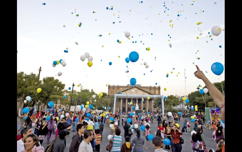 Jalisco | Se dieron cita decenas de niños y adultos en la Plaza de la Liberación Lanzan cientos de globos con cartitas para el Niño Dios Se dieron cita decenas de niños y adultos en la Plaza de la Liberación Por: EL INFORMADOR 23 de diciembre de 2010 - 02:06 hs Cientos de goblos tomaron camino al cielo con cartitas para el Niño Dios. E. BARRERA / GUADALAJARA, JALISCO (23/DIC/2010).- Ante el periodo decembrino, la Cámara Nacional de Comercio (Canaco) de Guadalajara reunió a decenas de niños y adultos en la Plaza de la Liberación, en la que lanzaron globos al cielo con cartitas dirigidas al Niño Dios. El evento es en el marco de los festejos del quincuagésimo tercer aniversario del Ornato Navideño, que organiza y opera la Canaco. Temas Canaco Municipios Navidad 2010 Recibe las últimas noticias en tu e-mail Todo lo que necesitas saber para comenzar tu día Registrarse implica aceptar los Términos y Condiciones
