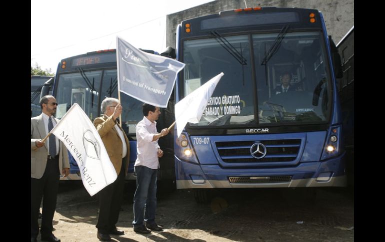 Jalisco | Parten de los siguientes puntos: ITESO, Centinela y Base Aérea Lanzan nuevas rutas del transporte de lujo en ZMG Parten de los siguientes puntos: ITESO, Centinela y Base Aérea Por: EL INFORMADOR 23 de octubre de 2010 - 17:01 hs Durante el banderazo de salida de las nueva rutas Premier en presencia del secretario de Vialidad, Diego Monraz. M. FREYRIA / GUADALAJARA, JALISCO (23/OCT/2010).- El transporte público de lujo ofrecerá a partir de este fin de semana el servicio Premier con tres rutas que llegan al centro y parten de los siguientes puntos: ITESO, Centinela y Base Aérea. Durante este sábado y hasta mañana lunes el servicio será gratuito; a partir del martes se cobrará la tarifa vigente de 9.50 pesos. Los 56 autobuses de la empresa Premier cuentan con GPS, sistema de circuito cerrado de televisión, cámaras en el exterior de las unidades y pretenden ser los primeros en implementar el sistema de pago electrónico, informó el director Hugo Maximiliano Higareda Macías. El transportista agregó que después del 4 de noviembre, cuando aplique el incremento a 11 pesos para el transporte de lujo; cobrarán 10 pesos, esto con el propósito de que los usuarios conozcan el servicio. Las tres rutas de lujo, son las asignadas originalmente a las líneas TUR, Cardenal y Línea Dorada; sólo que se hicieron algunas modificaciones a sus recorridos o se crearon extensiones o vías. EL INFORMADOR / LETICIA FONSECA Temas Transporte Público Vialidad Movilidad urbana Recibe las últimas noticias en tu e-mail Todo lo que necesitas saber para comenzar tu día Registrarse implica aceptar los Términos y Condiciones