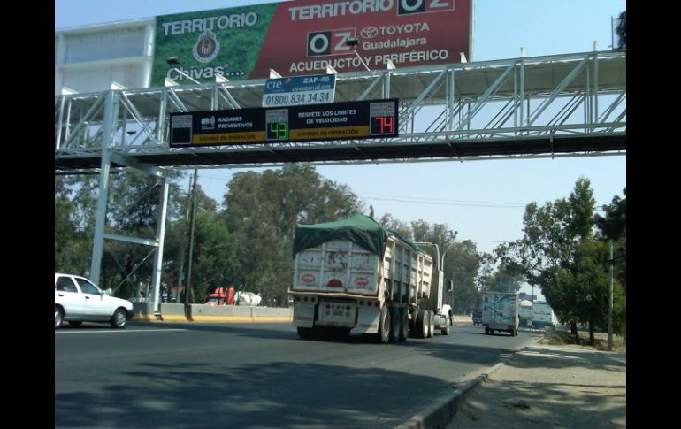 Jalisco | Los señalamientos muestran la velocidad a la que se transita; podrían evitar fotomultas Listos, paneles preventivos en el Periférico Los señalamientos fueron implementados en la avenida, a su cruce con Calzada Independencia, 5 de Mayo, Universidad del Valle de México y Fertimex Por: EL INFORMADOR 7 de abril de 2011 - 13:49 hs Cuando el indicador está en color verde significa que el automovilista circula dentro de los topes permitidos. L. FONSECA / GUADALAJARA, JALISCO (07/ABR/2011).- Quedaron en funcionamiento en Periférico los 24 paneles preventivos, cuyas pantallas muestran la velocidad a la que se transita, por lo tanto, es posible autorregularse para evitar las fotomultas. Este equipo complementa los ocho radares fijos y cinco móviles que operan en la arteria, para captar a los conductores “correlones”. “Son 24 paneles en ocho puntos, en donde se está invitando a que el automovilista, también el chofer del transporte público o de carga, a que se autorregule, vea a qué velocidad viene”, explicó el secretario de Vialidad y Transporte (SVyT), Diego Monraz Villaseñor. Las pantallas muestran a los conductores a qué velocidad circulan en los tres carriles de Periférico. Cuando el indicador está en color verde significa que el automovilista circula dentro de los topes permitidos, en caso de encontrarlo en amarillo, revela que comienza a superar los límites. Mientras que el rojo indica que se transita a exceso de velocidad, en esta situación lo recomendable es reducirla para no ser sujetos a la fotomulta. Los paneles preventivos pese a contar con radar, no emiten multas, precisó Monraz Villaseñor, “es una especie de advertencia para generar conciencia y manejar de manera más segura”. Los radares preventivos se ubican en Periférico a la altura de Calzada Independencia, 5 de Mayo, Universidad del Valle de México y Fertimex. EL INFORMADOR / LETICIA FONSECA Temas Vialidad SVyT Diego Monraz Periférico Lee También Analizan modelo de transporte público para avenida López Mateos ¿Y la ampliación de la Línea 1? Cuando las cosas se hacen bien Preferencia y circulación Recibe las últimas noticias en tu e-mail Todo lo que necesitas saber para comenzar tu día Registrarse implica aceptar los Términos y Condiciones
