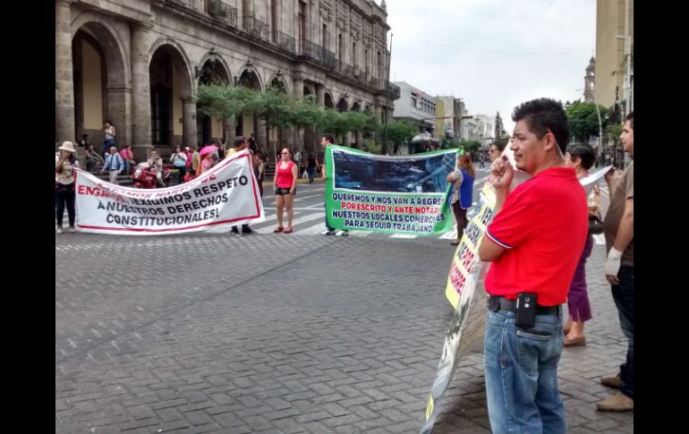 Jalisco | Exigen la firma jurídica de la autoridad que les garantice su lugar adentro del mercado Locatarios del Mercado Corona cierran Avenida Alcalde Exigen la firma jurídica de la autoridad que les garantice su lugar adentro del mercado una vez que esté terminado. Por: EL INFORMADOR 23 de abril de 2015 - 15:11 hs Los comerciantes esperan que los reciba personal del Ayuntamiento de Guadalajara para que les den una respuesta. EL INFORMADOR / GUADALAJARA, JALISCO (23/ABR/2015).- Locatarios del mercado Corona se manifestaron desde antes de a las 16:00 horas a las afueras del Ayuntamiento de Guadalajara con pancartas que exigían la firma jurídica de la autoridad que les garantice su lugar adentro del mercado una vez que esté terminado. Los inconformes cerraron la avenida Alcalde desde su cruce con Juan Manuel hasta Juárez, por lo que el tráfico en el centro está cargado en las calles de los alrededores. Además la avenida Hidalgo está cerrada desde el paso a desnivel en la Calle Santa Mónica. En el sitio se encuentran ya agentes viales ayudando a agilizar la circulación Los comerciantes esperan que los reciba personal del Ayuntamiento de Guadalajara para que les den una respuesta y más información del acomodo de sus locales en el mercado Corona que debe quedar finalizado en septiembre de este año, luego de que sufrió un incendio en mayo de 2014. A las 17:10 horas pusieron sus mantas en el piso y se movieron sobre la banqueta liberando ya finalmente las vialidades. Temas Manifestaciones en Jalisco Ayuntamiento de Guadalajara Municipios Mercado Corona Lee También ¡No frente a mi banqueta! Preferencia y circulación Clima en Guadalajara hoy: el pronóstico para el domingo 12 de octubre de 2025 Recuperan camión de carga robado en Tlajomulco Recibe las últimas noticias en tu e-mail Todo lo que necesitas saber para comenzar tu día Registrarse implica aceptar los Términos y Condiciones