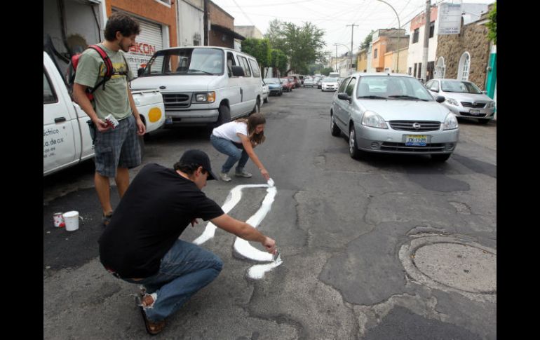 Jalisco | El proyecto nació luego de que un ciclista resultara lesionado al caer en un bache Los daños en calles se pintan de colores con 'Adopta un bache' El asfalto se convirtió en el lienzo perfecto para pintar una imagen de exigencia y denuncia para las autoridades Por: EL INFORMADOR 17 de marzo de 2012 - 12:59 hs Grupos de ciudadanos pintaron y adoptaron su bache en Miravalle y el Centro de Guadalajara. / GUADALAJARA, JALISCO (17/MARZO/2012).- El punto de reunión fue el cruce de Garibaldi y José Clemente Orozco, en la colonia Villaseñor. Ahí, una veintena de ciudadanos acudió con pintura y brochas para pintar los contornos de baches y hoyos de las calles, con la finalidad de hacer visibles los daños que sufren las calles de Guadalajara. El proyecto se llama “Adopta un bache”, y nació tras una lamentable situación. Un ciclista resultó fracturado tras caer en un bache en la colonia Americana, y al correrse la voz, vecinos tomaron la decisión de escoger un bache y darle su toque personal con pintura blanca y de colores. Al movimiento se unió el pintor tapatío Albel Galván, quien dibujó estrellas de color blanco en cuanto bache se encontró. Aseguró que la unión de ciudadanos puede lograr mucho y por eso se unió al proyecto, para denunciar al Ayuntamiento de Guadalajara la situación en que están envueltas las calles. Y así, sorteando los coches, los tapatíos convirtieron los baches en estrellas, soles, coches, animales, casas y caritas felices de color blanco. Los automovilistas bajaron la velocidad. Es más, desde lejos se vio cómo su manera de conducir se convirtió en un “zigzag”; era imposible no ver los baches, pintados de blanco. Además de que la pintura ayuda a los automovilistas, ciclistas y motociclistas para que vean el bache a tiempo y logren esquivarlo, el objetivo es que las autoridades tapen los daños con material resistente, y se deje de medidas paliativas que no remedian nada. De manera paralela al punto de la zona de Santa Tere, otros grupos de ciudadanos pintaron y adoptaron su bache en Miravalle y el Centro de Guadalajara. EL INFORMADOR / THAMARA VILLASEÑOR Temas Municipios SVyT Calles y vialidades de Guadalajara Movimientos ciudadanos Lee También Clima en Guadalajara hoy: el pronóstico para el viernes 10 de octubre de 2025 Cine al aire libre en Guadalajara: Cartelera del 9 al 12 de octubre ¿Cómo llegar en camión o tren a la Romería 2025? Viernes de tormentas en Guadalajara; aparecerán a esta hora Recibe las últimas noticias en tu e-mail Todo lo que necesitas saber para comenzar tu día Registrarse implica aceptar los Términos y Condiciones