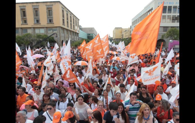 GUADALAJARA, JALISCO (27/AGO/2016).- Jalisco inclinará la balanza en la próxima elección presidencial, aseguró el alcalde tapatío Enrique Alfaro durante la toma de protesta de la Comisión Operativa Municipal de Guadalajara “La Fuerza del Movimiento” y ante miles de simpatizantes emecistas en la explanada del Instituto Cultural Cabañas.“Porque aquí en Jalisco vamos a ser factor clave para definir al próximo Presidente de México y de una vez le decimos al PRI que aquí no van a pasar: lo vamos a detener aquí en Jalisco”, señaló Alfaro.Respecto a las acusaciones generadas por la vinculación de gobiernos emecistas con el presunto operador del cártel Nueva Generación, Sergio Kurt Schmidt Sandoval, Alfaro señaló que son ataques similares a los vividos en las campañas del 2012.El munícipe tapatío indicó que esta disputa “no distraerá ni enredará a su movimiento” y aseguró que están preparados para enfrentar la “embestida al sistema” de los partidos políticos que no quieren cambiar el rumbo del Estado.Al tomar protesta a los 35 miembros de la Comisión Operativa Municipal de Guadalajara, Dante Haro, líder nacional de MC, indicó que con esto se inicia formalmente la construcción de la plataforma que impulsará a Movimiento Ciudadano rumbo al 2018.Al evento acudieron alcaldes de los 24 municipios de Movimiento Ciudadano y diputados locales y federales.Simpatizantes del partido Movimiento Ciudadano (MC) arribaron al mitin político en la explanada del Instituto Cultural Cabañas, a bordo de camiones urbanos y privados. Ante ello, los dirigentes naranjas fueron acusados de “acarreo”.En sus redes sociales, el dirigente estatal del Partido Revolucionario Institucional (PRI) José Socorro Velázquez y el regidor del tricolor en el Ayuntamiento de Guadalajara, Sergio Otal Lobo, subieron fotografías en donde se aprecia que se ofrecieron lonches a los asistentes al evento.“Movilizar a simpatizantes no es el problema, sino que se presenten ante la sociedad como diferentes y hagan lo que tanto critican”, sentenció en Twitter José Socorro.El presidente municipal de Guadalajara, Enrique Alfaro, negó en su discurso que fueran “acarreados” al señalar que todos habían asistido por su voluntad.EL INFORMADOR / FABIOLA HERNÁNDEZ