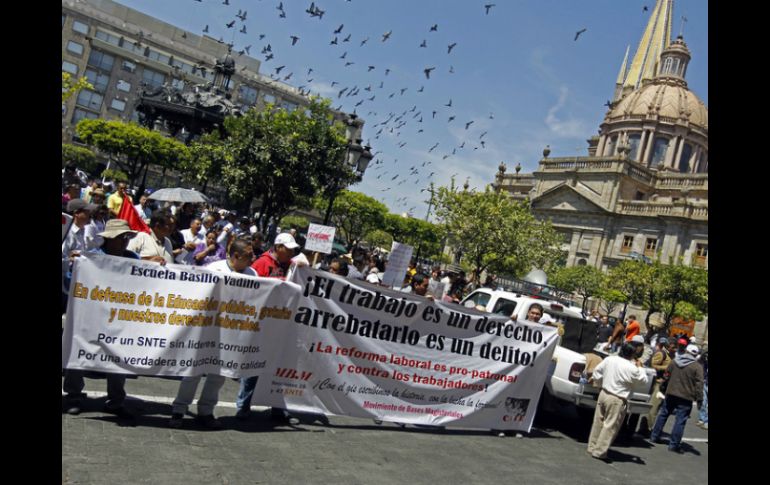 Jalisco | Toman Avenida Hidalgo; se recomiendan rutas alternas Maestros marchan rumbo a Plaza de Armas En el marco del Día del Trabajo, maestros planean mostrar cuáles son sus condiciones laborales Por: EL INFORMADOR 1 de mayo de 2013 - 08:00 hs Planean llegar a Plaza de Armas a las 09:45 horas. ARCHIVO / GUADALAJARA, JALISCO (01/MAYO/2013).- "Avanzan ya banderas de unidad y tú vendrás marchando junto a mí..." es una de las frases de la canción que acompaña la marcha de los trabajadores de Jalisco. El contingente comenzó su marcha minutos antes de las 09:00 horas desde Avenida Chapultepec y ya camina por Avenida Hidalgo, que está cerrada a la circulación,rumbo al Centro de la Ciudad para llegar a Plaza de Armas. Se recomienda tomar rutas alternas "Un nuevo primero de mayo. Hoy iniciamos un nuevo ciclo y nos damos cita para recordar a los trabajadores" fueron las palabras que dieron la instrucción para que los trabajadores comenzaran a caminar. Un hombre que toma el micrófono, y quien es uno de los elementos de logística, expresó: "Partidos políticos nos traicionan (...) y hoy nuestros derechos están en peligro". Maestros de la Unión Nacional de Trabajadores (UNT) iniciaron su caminata rumbo al Centro tapatío para hacer su pronunciamiento sobre su realidad laboral, en el marco del Día del Trabajo. Con información de Mayra Torres Temas Manifestaciones en Jalisco Vialidad Día del Trabajo Avenida Alcalde EL TEMA INFORMADOR Lee También Clausuran centro de rehabilitación en Tonalá por posibles delitos ¿Será obligatorio presentar la CURP biométrica para trámites escolares? Día de Muertos 2025: ¿Por qué será más caro el Pan de Muerto este año? Presentan a los cinco finalistas del Premio Adolf B Horn Recibe las últimas noticias en tu e-mail Todo lo que necesitas saber para comenzar tu día Registrarse implica aceptar los Términos y Condiciones