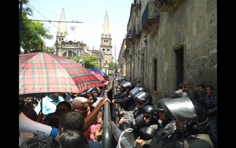 Jalisco | El grupo de manifestantes se integra por alrededor de 700 inconformes Maestros toman el Congreso; piden diálogo con diputados El grupo de manifestantes se integra por alrededor de 700 inconformes Por: EL INFORMADOR 17 de julio de 2015 - 12:08 hs GUADALAJARA, JALISCO (17/JUL/2015).- Un grupo de alrededor de 700 maestros salieron a las calles del Centro Histórico de Guadalajara y, a las puertas del Congreso local, exigieron que los legisladores atienda a una comisión integrada por representantes del gremio. Los inconformes proponen que sean 20 docentes quienes ingresen a dialogar con los legisladores locales, pero que sólo hablen cinco para agilizar la reunión. David Huerta, representante de la Comisión de Educación del Poder Legislativo habló con los maestros para pedirles que sólo sean cinco los que ingresen al encuentro. Al no lograr un acuerdo sobre el número que integraría la comisión, los maestros salieron de la sede del Congreso para dirigirse al cruce de la avenida Hidalgo y la Calzada Independencia donde cerraron la vialidad. Fueron aproximadamente 500 trabajadores de la educación los que mantuvieron cerrado tan importante cruce. Minutos después, David Huerta informó a los manifestantes que aún permanecían en el Congreso, que sí recibirían a los 20 representantes a los que originalmente se habían negado atender. Aunque los maestros mostraron disposición para ingresar a la conversación con los legisladores, las calles no había sido reabiertas hasta las 13:15 horas. Temas Congreso local Manifestaciones en Jalisco SNTE Reforma Educativa Lee También Charros de Jalisco remonta y vence a Guasave con una gran noche de Bligh Madris Realizan toma de protesta del Consejo Directivo de la ANDDAPA Charros de Jalisco inaugura la temporada de invierno de beisbol Brenda Carrera rinde primer informe legislativo Recibe las últimas noticias en tu e-mail Todo lo que necesitas saber para comenzar tu día Registrarse implica aceptar los Términos y Condiciones