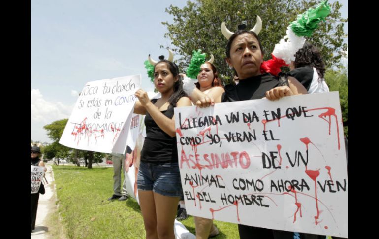 Jalisco | Alrededor de 30 personas muestran su rechazo a la tauromaquia Manifestación antitaurina frente a plaza de toros Alrededor de 30 personas muestran su rechazo a la tauromaquia Por: EL INFORMADOR 4 de agosto de 2013 - 15:41 hs Los manifestantes se reunieron esta tarde afuera de la plaza de toros Nuevo Progreso. / GUADALAJARA, JALISCO (04/AGO/2013).- Para mostrar a peatones y automovilistas su rechazo a la tauromaquia, alrededor de 30 personas se reunieron esta tarde afuera de la plaza de toros Nuevo Progreso, exponiendo pancartas de rechazo a lo que consideran es una matanza de toros. La convocatoria se realizó a través de la red social Facebook, y permitió acercar a personas de distintas edades para expresar en conjunto su desacuerdo con la "muerte en el ruedo". De acuerdo con los organizadores, el fin de esta manifestación no es convencer a quienes gustan de la tauromaquia, sino lograr crear conciencia en quienes la desconocen para que se sumen a las voces de crítica. En breve, más información... EL INFORMADOR / ISAACK DE LOZA Temas Manifestaciones en Jalisco Toros Municipios Lee También Viene por la tarde la tormenta a Guadalajara Diputados responden a Lemus sobre diálogo por la Reforma Judicial Omar "N" tiene al menos dos carpetas de investigación más "en archivo" IDEFT reconoce a trabajadores con 20 y 25 años de servicio Recibe las últimas noticias en tu e-mail Todo lo que necesitas saber para comenzar tu día Registrarse implica aceptar los Términos y Condiciones
