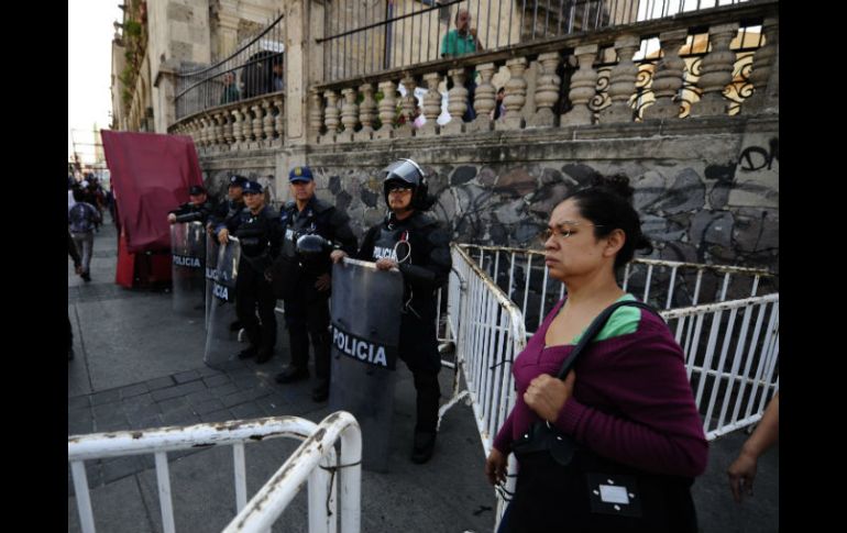 Jalisco | Colocan vallas alrededor de la zona Mantienen vigilado San Juan de Dios para evitar regreso de ambulantes Secretario General de Gobierno admite que en el operativo contra piratería falló el protocolo Por: EL INFORMADOR 2 de noviembre de 2014 - 03:43 hs Antimotines vigilan frente al mercado de Javier Mina y Calzada Independencia. EL INFORMADOR / J. Mendoza GUADALAJARA, JALISCO (02/NOV/2014).- Tras los disturbios ocurridos la tarde del pasado viernes en la zona de San Juan de Dios, grupos de antimotines de la Policía tapatía y estatales mantuvieron presencia desde ayer por la mañana en la zona, sobre todo en el banquetón del templo, con el objetivo de que no se reinstalen los comerciantes ambulantes. Colocaron vallas a la altura de José María Mercado y en la Calzada Independencia, así como en el ingreso a la Plaza de los Mariachis y al propio mercado. Por su parte, el secretario general de Gobierno, Roberto López Lara, admitió que falló el protocolo. Aunque no tiene el dato de cuántos elementos envió Guadalajara al operativo, dijo que por lo que sabe eran pocos. “Siento que no se cumplió el protocolo, hay que decirlo”. Temas Mercado Libertad Municipios Policía de Guadalajara Policía del Estado Lee También Estos son todos los cambios que tendrá el transporte público por el paso de la Romería ¿LLUVIA en GDL por la noche?, pronóstico del clima para hoy, 10 de octubre Bajan lluvias el sábado en Guadalajara, pero se mantiene nublado Madrugan para asegurar lugar en concierto de Caifanes en Fiestas de Octubre Recibe las últimas noticias en tu e-mail Todo lo que necesitas saber para comenzar tu día Registrarse implica aceptar los Términos y Condiciones