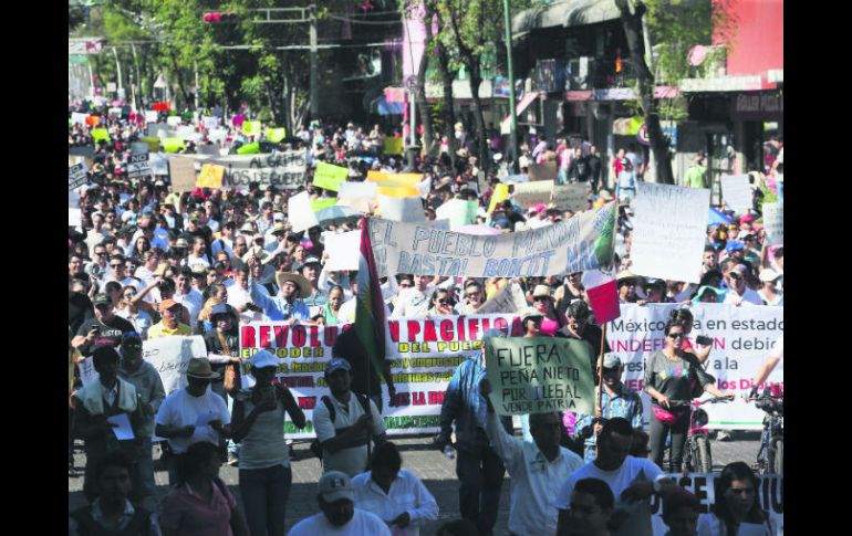 GUADALAJARA, JALISCO (08/ENE/2017).- En medio de un gran operativo de seguridad, más de 10 mil personas, según cifras oficiales, marcharon hacia el Centro de la ciudad, exclamando su rechazo al incremento en el precio de los combustibles autorizado por el Gobierno federal el pasado 1 de enero. La presencia de la autoridad y la organización de los propios ciudadanos permitió que no se registraran incidentes violentos durante la manifestación.El contingente partió de la Glorieta Minerva al filo de las 10:20 horas, escoltado en todo momento por elementos de la Secretaría de Movilidad, policías de Guadalajara y estatales, así como elementos de Protección Civil, tanto municipal como de JaliscoDurante la marcha, que duró alrededor de dos horas, los manifestantes gritaron consignas como “¡Fuera Peña!” y entonaron en varias ocasiones el Himno Nacional. Algunos asistentes, líderes de algunos grupos, cargaban una bandera monumental, mientras gritaban: “¡Viva México!”. Otros que se encargaban de la seguridad, circulaban en motocicletas y emitían recomendaciones para evitar disturbios: “Si ven a alguien con la cara cubierta, retírenlo o pídanle que se la quite. No caigan en agresiones, si alguien comienza a generar violencia, grábenlo o tómenle foto. Esta es una marcha pacífica”.Conforme avanzaba el contingente por Avenida Vallarta, más ciudadanos se sumaban. Incluso algunos se incorporaron en avenidas como Chapultepec, Américas y Federalismo. Cuando esto pasaba, los líderes volvían a recitar las medidas de seguridad y pedían compostura.Alrededor de las 12:30 los inconformes llegaron a Plaza de la Liberación, y, afuera de una de las puertas de Palacio de Gobierno, exigieron al gobernador Jorge Aristóteles Sandoval Díaz que saliera a darles una respuesta.Sin embargo, el edificio se encontraba vacío, por lo que instalaron un cartel con la leyenda de “clausurado” en la puerta del recinto. Después, caminaron hacia el Congreso local donde repitieron la acción, gracias a que una de las manifestantes brincó las barreras de seguridad instaladas afuera del recinto legislativo.Los líderes anunciaron que el lunes tomarán de forma pacífica la recaudadora 1, para no dejar entrar a los ciudadanos y el martes las instalaciones del Sistema de Administración Tributaria. Para finalizar, los asistentes entonaron el Himno Nacional junto al asta bandera de Plaza Liberación, dejando claro que continuarán las protestas en contra del gasolinazo.Con esta, ya son cinco jornadas de manifestaciones que se llevan a cabo en Jalisco, luego de que el 1 de enero se impusieran nuevos precios a la gasolina y al diésel.