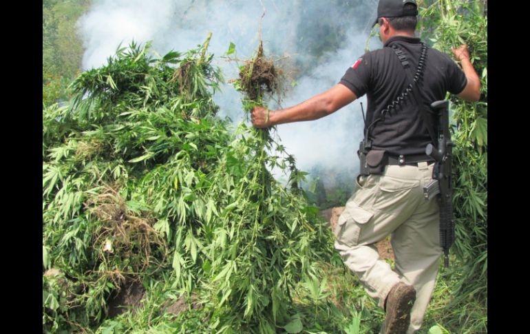 Jalisco | Se detuvieron a 15 personas, además de asegurar 47 armas de fuego Más de ocho toneladas de mariguana aseguradas en octubre De los 15 detenidos también se logró obtener cinco mil 200 litros de gasolina, mil 100 litros de diésel, 14 equipos de radiocomunicación y 54 vehículos Por: EL INFORMADOR 6 de noviembre de 2013 - 10:33 hs La Sedena destruyó 153 hectáreas de plantíos. ARCHIVO / GUADALAJARA, JALISCO (06/NOV/2013).- Un total de 15 personas detenidas, más de ocho toneladas de mariguana incineradas y 153 hectáreas de plantíos destruidas fueron algunos de los resultados que logró la Secretaría de la Defensa Nacional ( Sedena) por medio de la Comandancia de la V Región Militar y la Comandancia de la 15 Zona Militar durante el periodo entre el 1 y 31 de octubre de 2013, informaron autoridades militares. En el caso de la V Región Militar, personal logró la detención de 14 personas en flagrancia delictiva, a quienes les aseguró 87 dosis de cocaína, 316 dosis de mariguana y 63 dosis de piedra. Entre el armamento conjunto se les aseguraron 47 armas de fuego, 63 cargadores para diversas armas y siete mil 843 cartuchos de diferentes calibres, así como una granada. De los detenidos también se logró obtener cinco mil 200 litros de gasolina, mil 100 litros de diésel, 14 equipos de radiocomunicación y 54 vehículos. Los militares de esta región también encontraron y destruyeron 498 plantíos de mariguana sembrados en 109 hectáreas; 553 plantíos de amapola sobre 49 hectáreas; 19 kilogramos de mariguana, un kilogramo de semilla de mariguana, un kilogramo de cocaína, un kilogramo de cristal y 78 secaderos de mariguana. Por su parte, la Comandancia de la 15 Zona Militar detuvo a una persona y aseguró ocho mil 909 kilogramos de marihuana; un kilogramo de semilla de mariguana; seis mil litros de combustible, 210 cartuchos de distintos calibres y 33 vehículos. También localizaron 206 plantíos de marihuana en una superficie de 44.27 hectáreas y 48 secaderos para esta droga. Las autoridades militares reciben reportes anónimos de actividades ilícitas a los números 3832 1037, 3658 1705 y a los correos electrónicos denuncia.15zm@mail.sedena.gob.mx y denuncia.vrm@mail.sedena.gob.mx. Temas Seguridad Decomisos de droga en Jalisco Mariguana Recibe las últimas noticias en tu e-mail Todo lo que necesitas saber para comenzar tu día Registrarse implica aceptar los Términos y Condiciones