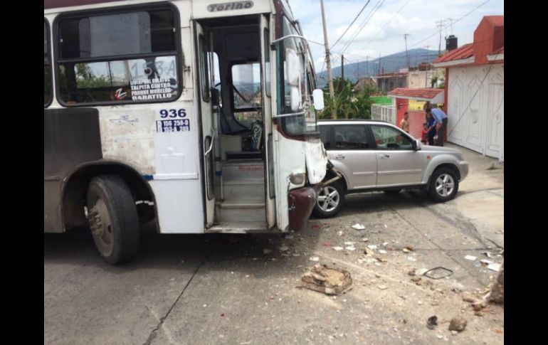 Jalisco | Un camión de la ruta 153 subía una pendiente cuando se quedó sin frenos Midibús se queda sin frenos y choca contra tres autos Una unidad de la ruta 153 subía una pendiente cuando se quedó sin frenos y se impactó contra los vehículos Por: EL INFORMADOR 4 de julio de 2016 - 16:08 hs El choque ocurrió la tarde de este lunes en la colonia Arandas, sobre avenida Plutarco Elías Calles. ESPECIAL / GUADALAJARA, JALISCO (04/JUL/2016).- Una unidad del transporte público que subía por una pendiente se quedó sin frenos, lo que ocasionó que se impactara contra varios vehículos de los que sólo hubo lesionados menores, informó Bomberos de Guadalajara. Fue hacia las 14:00 horas que se reportó del hecho sobre avenida Plutarco Elías Calles al cruce con Hacienda de Tala, en la colonia Arandas. Unidades de rescate encontraron a una unidad de la ruta 153-A, número económico 936, impactada contra tres vehículos y un poste telefónico que derribó. Pese a lo aparatoso del percance sólo se tuvo un saldo de tres personas lesionadas leves, las tres pasajeras del camión. No obstante, a dos de las se les trasladó para su valoración a Servicios Médicos debido a que estaban embarazadas. Temas Seguridad Transporte Público Accidentes Lee También Tras persecución policial, localizan 70 kilos de marihuana en Tuxpan Choque en la colonia Aldama Tetlán deja dos lesionados Policía de Zapopan realiza cinco detenciones en una semana Omar 'N' es vinculado a proceso por presunto abuso sexual infantil agravado Recibe las últimas noticias en tu e-mail Todo lo que necesitas saber para comenzar tu día Registrarse implica aceptar los Términos y Condiciones