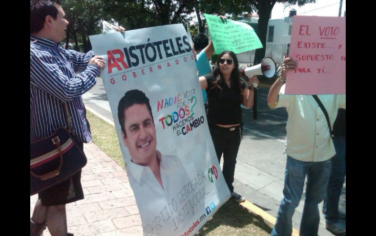 Jalisco | Le reclaman su oposición a los matrimonios entre personas del mismo sexo Miembros de comunidad gay se manifiestan contra Aristóteles La comunidad Lésbico-Gay dice que sus declaraciones demuestran ignorancia y falta de compromiso con la diversidad sexual Por: EL INFORMADOR 1 de mayo de 2012 - 15:11 hs El grupo de manifestantes dicen que harán un llamado para que la comunidad Gay no vote por el priista. / GUADALAJARA, JALISCO (01/may/2012).- Alrededor de 15 miembros de grupos Colectivo Lésbico-Gay Tapatío, Red Universitaria de la Diversidad Sexual y Colega, se manifestaron este mediodía afuera de Casa Jalisco. Esta vez, la protesta no fue contra el primer mandatario estatal, Emilio González Márquez. Se trató de un reclamo para el candidato del Partido Revolucionario Institucional (PRI) a la gubernatura de Jalisco, Jorge Aristóteles Sandoval Díaz, a quien no permitirán que los gobierne y le dijeron "aquí no vas a llegar", haciendo referencia a la casa del gobernador. Los jóvenes llegaron caminando por avenida Manuel Acuña hacia Casa Jalisco, con una bandera multicolor, cartulinas con leyendas y un cartel de Aristóteles. Ahí comenzaron su manifestación, en respuesta a las declaraciones de Sandoval Díaz, quien se pronunció en contra del matrimonio entre personas del mismo sexo, en un encuentro con jóvenes del TEC de Monterrey. "Fomenta que continúen las agresiones y discriminación que sufren todos los días la comunidad del arcoíris; sus declaraciones sólo demuestran su completa ignorancia y su falta de compromiso parra con la diversidad sexual", aseguró José Eduardo Rodríguez Pérez, de la Red Universitaria de la Diversidad Sexual. Dijo que el llamado también se hará a todas las personas con preferencias sexuales diferentes, para que no voten por el priista. "El señor Aristóteles, aunque prometa un cambio, piensa gobernar de la misma forma como lo ha hecho Acción Nacional; el del 'asquito', las redadas contra los bares gay y las controversias constitucionales que buscaban frenar la obligación de los estados de reconocer lo logrado en el Distrito Federal". El grupo de jóvenes instaló las cartulinas, el cartel de Sandoval Díaz y dos paquetes de pelotas de colores, de lo que dijeron que esperan que el próximo gobernador "tenga las pelotas" para defender a las minorías. Luego de la manifestación, un miembro del grupo Gardenias Tapatías, Giovanni Manuel, arremetió en contra del pequeño grupo manifestante, e indicó que "10 personas no son la comunidad gay de Guadalajara". "Estamos con Aristóteles, por eso estamos aquí; Aristóteles ha tenido palabra, ha estado con la diversidad sexual desde que fue diputado, llegó a ser presidente municipal y ahora es candidato a la gubernatura". Además de representar a su grupo, también acudió por parte de la Confederación Nacional de Organizaciones Populares Diversidad Sexual del PRI. EL INFORMADOR / THAMARA VILLASEÑOR Temas Municipios Matrimonio homosexual Aristóteles Sandoval Lee También Suben termómetros en Guadalajara y se espanta la lluvia este martes Puerto Vallarta en desgracia; tormenta deja daños y un muerto (FOTOS) Regresa el calor este lunes a Guadalajara; se prevé lluvia Más de 313 mil menores de edad viven en matrimonio en México Recibe las últimas noticias en tu e-mail Todo lo que necesitas saber para comenzar tu día Registrarse implica aceptar los Términos y Condiciones
