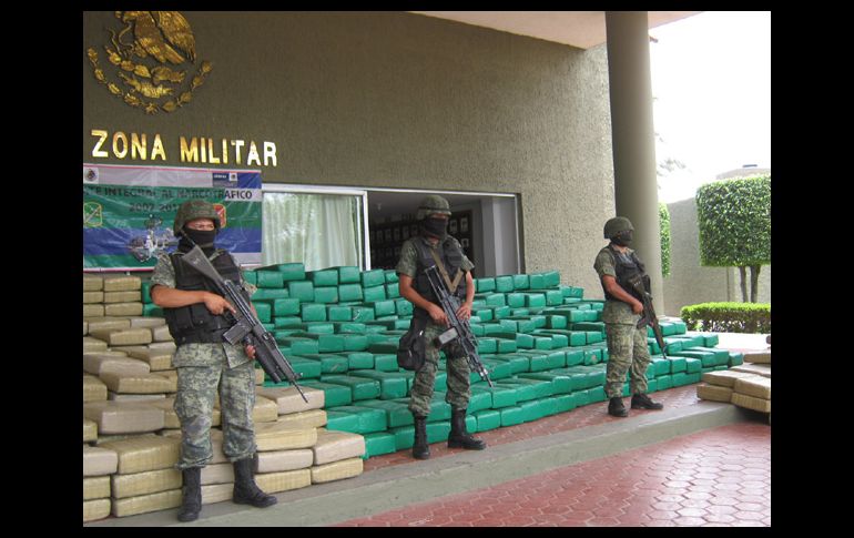 Jalisco | También aseguraron vehículos, armas y herramienta para empaquetar droga Militares decomisan casi una tonelada de mariguana Una denuncia ciudadana permitió realizar el aseguramiento del enervante y semillas del mismo Por: NTX 20 de febrero de 2011 - 15:45 hs Decomisaron 935 kilos 415 gramos de mariguana y un kilo 900 gramos de semilla del mismo enervante. ARCHIVO / SAN CRISTÓBAL DE LA BARRANCA, JALISCO (20/FEB/2011).- Personal militar localizó y aseguró mariguana empaquetada, semilla de mariguana, un arma de fuego, cargadores, cartuchos, herramienta para empaquetar droga y vehículos, en el municipio de San Cristóbal de la Barranca. La 15 Zona Militar informó que luego de una denuncia ciudadana decomisó 935 kilos 415 gramos de mariguana y un kilo 900 gramos de semilla del mismo enervante, todo distribuido en 161 paquetes confeccionados con cinta canela y 22 costales. Puntualizó que además encontraron una bolsa de plástico que contenía en su interior semilla de mariguana, un fusil automático ligero calibre 7.62, nueve cargadores y 541 cartuchos de diferentes calibres. Asimismo, se incautaron una camioneta pick up color gris modelo 1986, placas de circulación 5X-83417 de California, Estados Unidos, una cuatrimoto color negra, cuatro cajones de madera, una prensa metálica y una báscula eléctrica. Temas Seguridad Decomisos de droga en Jalisco .Mariguana Recibe las últimas noticias en tu e-mail Todo lo que necesitas saber para comenzar tu día Registrarse implica aceptar los Términos y Condiciones