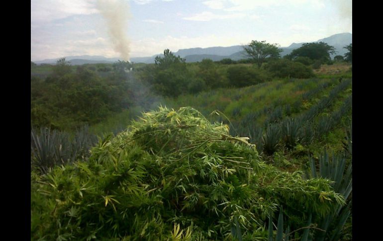 Jalisco | Ejército Mexicano realizó un operativo en Tequila, Magdalena y Hostotipaquillo Militares queman al menos 40 toneladas de mariguana Unos 300 plantíos de esta yerba que fueron asegurados en operativos en los municipios de Tequila, Magdalena y Hostotipaquillo Por: EL INFORMADOR 27 de septiembre de 2012 - 13:34 hs Hasta el momento ha habido personas detenidas. / GUADALAJARA, JALISCO (27/SEP/2012).- Más de 40 toneladas de mariguana fueron incineradas por elementos de la XV Zona Militar, en la Región Valles, tras cinco días de operativos realizados en barrancas, cañadas y cerros. De acuerdo con el general Gerardo Woldurs Redondo, jefe del Estado Mayor de la citada zona castrense, informó que los operativos fueron realizados principalmente en los municipios de Tequila, Magdalena y Hostotipaquillo, después de que iniciara el temporal de lluvias, debido a que la planta del enervante florece. "En cuanto a plantíos, llevamos más de 330, sobre una superficie de más de 40 hectáreas, lo que representa más de 40 toneladas incineradas en el estado de Jalisco", explicó el general. Se detalló que la mayoría de las extensiones sembradas del enervante fueron localizadas vía aérea, pero otras se encontraron cuando pelotones realizaron recorridos de vigilancia por brechas de los citados municipios. En el caso del municipio de Tequila, en las inmediaciones del poblado de La Labor, fueron encontradas 13 hectáreas sembradas del enervante, en algunas de éstas, estaban ocultas entre sembradíos de maíz. Por su parte, entre los límites de Magdalena y Hostotipaquillo, fueron encontrados terrenos que inicialmente fueron utilizados para plantar maguey, y posteriormente mariguana. Los operativos realizados por soldados del 14° y 79° Batallones de Infantería iniciaron desde el 23 de septiembre, y terminarían hasta destruir el último plantío en la zona. Poblado El Llano Con apenas 70 viviendas, aproximadamente, en el poblado de El Llano, enclavado en una parte de la Sierra Madre Occidental, dentro del municipio de Hostotipaquillo, fueron encontrados a su alrededor más de 25 hectáreas sembradas de mariguana, pero curiosamente entre plantas de maguey. Tras un operativo realizado en fincas abandonas de la comunidad, fueron aseguradas e incineradas dos toneladas de la droga. "En esta población, ya hemos detectado tres secaderos y hasta el momento llevamos más de dos toneladas y media de mariguana que se está destruyendo (quemando) y continuamos buscando más secaderos", dijo el general Woldurs Redondo. Sin embargo, por otra parte, dicha comunidad es considerada como un "pueblo motero", ya que gran parte de sus habitantes se dedican a la siembra del enervante, aunque también cultivan maíz. A la llegada de los militares, era claro que los colonos de El Llano, se encontraban enfurecidos debido a que la mariguana iba a ser quemada; es el "sustento" de su economía. Era claro, "un secreto a voces", que la gente de El Llano se dedica principalmente al cultivo de la mariguana. Soldados en operativos De acuerdo con pláticas de algunos militares del 79° Batallón de Infantería, cuando acuden a la destrucción de plantíos de mariguana, se comentan que el dueño del predio se quería "hacer rico" con una sola cosecha, la cual equivale aproximadamente a 13 hectáreas. "Una vez (...) y los tengo bien contaditos, yo y mis compañeros nos la pasamos un mes, con 18 días, buscando sembradíos de mota y quemándola; cuando terminamos, nos regresamos y descansamos tres días y volvimos a trabajar", dijo un soldado del batallón de infantería, quien además es padre de familia. Además, comentó que es una tarea difícil y cansada, pero de acuerdo con sus principios militares es un gran logró evitar que las drogas lleguen a las manos de las personas que las consumen. Costo de la mariguana Según estimaciones del general Gerardo Woldurs Redondo, un kilo de mariguana comercializado en el poblado de El Llano tiene un costo de 400 pesos, pero éste ya en la cabecera municipal de Hostotipaquillo cuesta 800 pesos. Además, cuando dicho enervante llega a la Zona Metropolitana de Guadalajara, su precio se eleva a mil 200 pesos. Se estima que en una hectárea sembrada de mariguana se extraen mil kilos de la droga, lista para ser comercializada. Para Saber El 25 de julio de 2012 fueron localizados 13 plantíos de mariguana y destruidos por elementos de la Secretaría de Seguridad Pública del Estado (SSPE) y de la Secretaría de la Defensa Nacional (Sedena), en operativo en conjunto. Se explicó que tanto los policías estatales y soldados del 32 Batallón de Infantería, perteneciente a la XI Zona Militar, con sede en Zacatecas, acudieron tras varias denuncias anónimas a un cerro conocido como Los Alotes, ubicado en las inmediaciones del poblado de El Salvador, perteneciente al municipio de Tequila. De acuerdo con los informes, de los 13 plantíos, fueron destruidas por medio de la incineración 86 mil 400 plantas de mariguana, la cuales estaban cultivadas en un aproximado de 20 mil metros cuadrados. No hubo personas detenidas. Temas Decomisos de droga en Jalisco Ejército Mariguana Lee También Recuperan camión de carga robado en Tlajomulco Denuncia en su contra es para ocultar un fraude: Hermana de Omar "N" Protección Civil reabre el malecón de Puerto Vallarta Detienen a asesino de joven en partido de futbol Recibe las últimas noticias en tu e-mail Todo lo que necesitas saber para comenzar tu día Registrarse implica aceptar los Términos y Condiciones