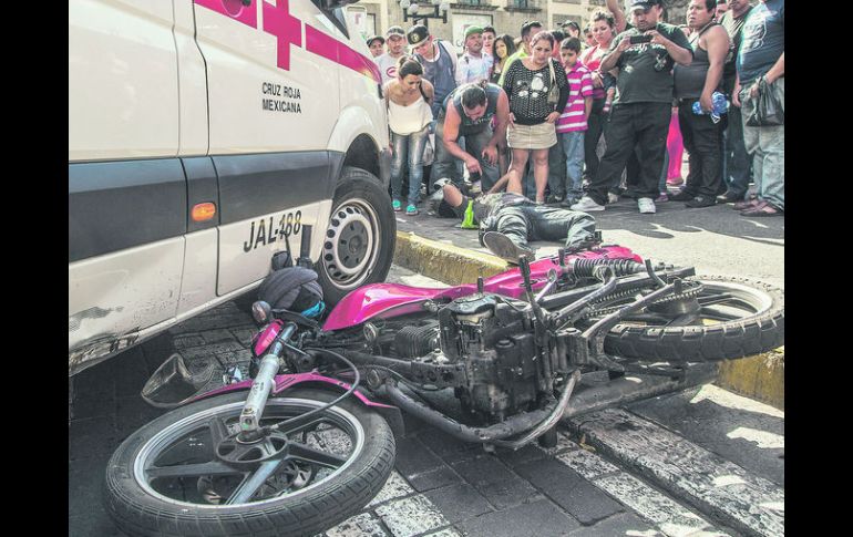 Jalisco | El percance vial se registró en la avenida Juárez Motociclista se estrella con ambulancia de la Cruz Roja El percance vial se registró en la avenida Juárez Por: EL INFORMADOR 1 de junio de 2014 - 20:35 hs El motociclista iba circulando por la extrema derecha cuando se estrelló en la ambulancia de la Cruz Roja. / GUADALAJARA, JALISCO (01/JUN/2014).- Un motociclista se estrelló en una ambulancia de la Cruz Roja, en la Zona Centro de Guadalajara ( ZMG) y resultó con golpes leves. El percance vial, se registró este domingo en la avenida Juárez, justo afuera de la estación de tren Plaza Universidad. Los técnicos en emergencias se encontraban atendiendo a una persona inconsciente en el lugar, cuando ocurrió el hecho. Testigos informaron a elementos de la Policía tapatíos, que el motociclista iba circulando por la extrema derecha, cuando se estrelló en la ambulancia de la Cruz Roja, con número económico JAL-188. El motociclista dijo ser Alan Pelayo Castillo, de 22 años, quien sufrió algunos golpes, por lo que fue atendido por otros paramédicos de la institución de emergencia, y llevado al puesto de emergencia ubicado a un costado del Parque Morelos. Mientras que un agente del Ministerio Público inició con las investigaciones del caso. Temas Seguridad Accidentes ZMG Cruz Roja Lee También ¿Dónde ver EN VIVO el partido de J13 Cruz Azul vs América? Zonas del EOU donde aún hay boletos para el Cruz Azul vs América Tarde soleada para Guadalajara; no se descarta lluvia Asesinan a balazos a una mujer en Tlaquepaque Recibe las últimas noticias en tu e-mail Todo lo que necesitas saber para comenzar tu día Registrarse implica aceptar los Términos y Condiciones