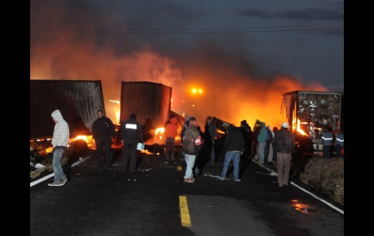 Jalisco | La víctima salió proyectada y cayó sobre el pavimento Muere hombre calcinado en choque carretero El operador de un tráiler chocó contra otro de doble remolque; la víctima salió proyectada y cayó sobre el pavimento Por: EL INFORMADOR 11 de febrero de 2012 - 16:43 hs Al lugar acuedieron agentes del IJCF, de la PGJE y el Semefo. / LAGOS DE MORENO, JALISCO (11/FEB/2012).- Un operador de un tráiler murió calcinado luego de que el carguero en el que se desplazaba se incendiara al chocar de frente contra otro. Además del hombre que murió calcinado, uno más resultó con golpes y quemaduras hasta de tercer grado, por lo que fue llevado a un hospital del municipio de Lagos de Moreno, Jalisco. El accidente ocurrió sobre la carretera Lagos de Moreno–Ojuelos, muy cerca de la curva conocida como El Roble, donde oficiales de la Policía Federal acudieron para auxiliar a los heridos. De acuerdo con versión de las autoridades, el accidente ocurrió cuando Jorge Dávila de 38 años de edad, originario de San Luis Potosí, conducía un tráiler en color blanco, con doble remolque, propiedad de la empresa de paquetería Estafeta, mismo que iba totalmente cargado y circulando en dirección de Ojuelos hacia Lagos de Moreno. Al salir de la curva de El Roble, aparentemente, por el exceso de velocidad, el chofer perdió el control y salió hacia la derecha de la carretera, pero al intentar reincorporarse invadió el carril contrario y chocó de frente contra un tráiler con doble remolque. Al momento del choque, Jorge salió proyectado de la unidad y cayó sobre el pavimento, además que inmediatamente ambas unidades comenzaron a incendiarse. Dentro del tráiler de Estafeta, en el camarote, viajaba dormido José Felipe Pescador García, de 35 años de edad, vecino del Estado de San Luis Potosí, quien al darse cuenta del fuego trató de salir, sin embargo, su ropa terminó envuelta en llamas. Otro par de choferes de un tráiler que pasaban por el lugar fueron de los primeros automovilistas en toparse con el accidente, ya que vieron a José Felipe correr envuelto en llamas, por lo que tomaron cobijas que traían y le sofocaron el fuego, después lo abordaron a la cabina de su camión en donde esperó la llegada de una ambulancia, según informó la Policía Municipal de Lagos de Moreno. El otro tráiler, en color amarillo, con doble remolque y cargado con piezas electrónicas para vehículo, con razón social TLE, y con domicilio en el municipio de Guadalupe, Nuevo León, era conducido por Nelson Rivera Flores de 31 años, vecino de Monterrey, quien quedó atorado dentro de la cabina y fue rescatado por transportistas que pasaban por el lugar. Nelson, sufrió fracturas en piernas, además de golpes en diversas partes del cuerpo, por lo que fue trasladado de urgencia al Hospital del IMSS Regional para su atención médica por paramédicos de la Cruz Roja. José resultó con quemaduras de segundo grado en su cuerpo, fue atendido por paramédicos y trasladado al Hospital del IMSS para su atención médica, su estado fue reportado como grave pero estable. Agentes del Ministerio Público de la Procuraduría General de Justicia del Estado de Jalisco (PGJEJ) y del Instituto Jalisciense de Ciencias Forenses (IJCF) llegaron al lugar y tras recabar la evidencia, realizaron el levantamiento del cuerpo calcinado de Jorge Dávila para llevarlo a las instalaciones del Servicio Médico Forense (Semefo). Temas Seguridad Accidentes con muertes en Jalisco Semefo IJCF Lee También Detienen a presunto homicida en Lomas de Oblatos Puerto Vallarta es reconocida como la mejor ciudad pequeña de Latinoamérica Suspenden clases en estos 9 municipios de Jalisco ante el paso de tormenta tropical 'Raymond' Clausuran centro de rehabilitación en Tonalá por posibles delitos Recibe las últimas noticias en tu e-mail Todo lo que necesitas saber para comenzar tu día Registrarse implica aceptar los Términos y Condiciones