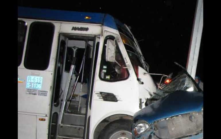 Jalisco | Un midibús de la ruta 619 impacta contra un Chevy en la Calzada Lázaro Cárdenas Muere la segunda víctima del transporte de este viernes Un midibús de la ruta 619 impacta por el costado derecho a un Chevy en la Calzada Lázaro Cárdenas Por: EL INFORMADOR 26 de septiembre de 2014 - 21:44 hs El chofer se da a la fuga con los papeles de la unidad; autoridades acuden a identificar el cadáver. EL INFORMADOR / GUADALAJARA, JALISCO (26/SEP/2014).- Una persona más murió víctima del transporte público la noche de este viernes en Tlaquepaque, con lo que sumaron dos en un solo día con el deceso de la madrugada en Tlajomulco. El hecho vial ocurrió sobre calzada Lázaro Cárdenas en los carriles de poniente a oriente entre el nodo Revolución y Patria, en Tlaquepaque. Un midibús de la ruta 619, número económico S-1136, circulaba en dicha dirección cuando impactó por el costado derecho a un automóvil Chevy placas HZY-3985. Pasajeros del midibús sólo mencionaron a las autoridades que sintieron un fuerte golpe hasta que se percataron de que el transporte prensó el vehículo contra el poste de señalamiento de la autopista a Zapotlanejo. El chofer del midibús tomó los papeles de la unidad y se dio a la fuga a pie, aseguraron los testigos. Éste dejó tras de sí a cinco personas lesionadas (todas pasajeras del midibús) y el conductor del Chevy muerto. Los lesionados fueron, según datos obtenidos de las autoridades presentes, Juan Ramón Pleto, que fue el más grave, Guadalupe Galleguez, Martha Lisa López, Ernesto Ramírez y Nora Imelia Núñez, quienes fueron llevados a los puestos de socorros. Personal de la Fiscalía, Bomberos y el Servicio Médico Forense acudieron al lugar para rescatar el cadáver, identificarlo y trasladarlo a la morgue. Temas Seguridad Accidentes con muertes en Jalisco Muertes a causa del transporte público IJCF Lee También Astros de Jalisco inicia con derrota en la Final de Zona de la LNBP Imputan a presuntos involucrados en nueva modalidad de extorsión en Jalisco Destacan empresarios aportación de Carlos Álvarez Bermejillo No hay que ser ni pesimistas ni optimistas, hay que guardar el equilibrio: Carlos Álvarez Bermejillo Recibe las últimas noticias en tu e-mail Todo lo que necesitas saber para comenzar tu día Registrarse implica aceptar los Términos y Condiciones