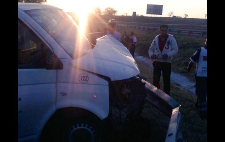 Jalisco | Dos personas más resultaron lesionadas, informó Protección Civil Muere persona en choque en autopista a Zapotlanejo Dos personas más resultaron lesionadas, informó Protección Civil Por: EL INFORMADOR 25 de mayo de 2015 - 12:19 hs Semefo levantó indicios de los hechos y trasladó el cuerpo. TWITTER / @pcJalisco GUADALAJARA, JALISCO (25/MAY/2015).- Una persona murió la mañana de este lunes en un choque en el kilómetro 6 de la autopista a Zapotlanejo; dos personas más resultaron lesionadas en este hecho, informó la Unidad Estatal de Protección Civil y Bomberos ( UEPCB). El evento ocurrió antes de las 7:00 horas. Personal de rescate se dirigió tras el reporte a dicha validad en los carriles de sentido hacia Guadalajara. El punto estaba a unos seis kilómetros de la caseta de La Joya hacia Zapotlanejo. Era una camioneta Cheyenne la que se impactó en contra una camioneta tipo van, al parecer, porque la primera invadió los carriles contrarios. El hecho dejó al conductor de la camioneta muerto y prensado dentro del vehículo; mientras que los viajantes de la van fueron los lesionados. Personal del Servicio Médico Forense trasladó el cuerpo tras extraerlo del vehículo y levantó indicios de los hechos. Temas Seguridad Accidentes con muertes en Jalisco Carreteras de Jalisco Lee También Rechazan ratificar a Espinosa Licón como magistrado del Supremo Tribunal de Justicia Lemus respalda a productores de maíz y reconoce su reclamo 'por un precio justo' Lemus afirma que no habrá impunidad desde el Estado en el caso de la detención de Nazario 'N' Intervención de la Policía de La Huerta, por posible desaparición forzada: Pablo Lemus Recibe las últimas noticias en tu e-mail Todo lo que necesitas saber para comenzar tu día Registrarse implica aceptar los Términos y Condiciones