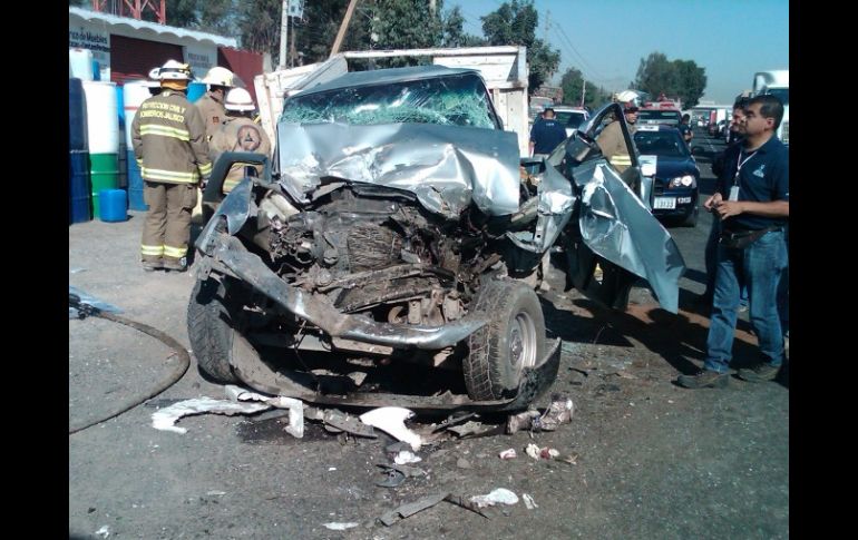 Jalisco | Sobre la Carretera a Chapala pasajeros de una Ranger quedaron prensados Muere un hombre al estrellar su camioneta contra autobús Sobre la Carretera a Chapala pasajeros de una Ranger quedaron prensados; sólo uno salió con vida Por: EL INFORMADOR 18 de febrero de 2011 - 08:20 hs El frente de la camioneta quedó afectado, luego del impacto contra la parte trasera de un autobús foráneo. M. PATIÑO / GUADALAJARA, JALISCO (18/FEB/2011).- Alrededor de las 08:15 de la mañana de este viernes falleció un hombre que viajaba a bordo de una camioneta Ford Ranger 2001 luego de que el vehículo se impactara contra un autobús foráneo a la altura del kilómetro 17 de la Carretera a Chapala. Producto del choque, otras dos personas quedaron lesionadas, una acompañaba a la víctima mortal y fue rescatada de entre los restos de la camioneta y otra iba a bordo del autobús perteneciente a la línea Guadalajara-El Salto. Al arribo de los equipos de auxilio y de seguridad, el conductor del autobús de pasajeros ya había huido del sitio, por lo que se desconoce su versión de los hechos. Los heridos fueron atendidos por elementos de Cruz Verde Tlaquepaque y trasladados para recibir atención hospitalaria. En tanto, una brigada de Protección Civil Jalisco laboró en el lugar para rescatar a los pasajeros del vehículo de carga. Reportes de radio informan que el accidente de esta mañana genera congestionamiento vehícular en la zona, por lo que es recomendable transitar con precaución. En el sitio se espera la llegada de agentes del Servicio Médico Forense para el levantamiento del cuerpo y la posterior investigación al respecto. Temas Seguridad Accidentes con muertes en Jalisco Carretera Chapala Recibe las últimas noticias en tu e-mail Todo lo que necesitas saber para comenzar tu día Registrarse implica aceptar los Términos y Condiciones