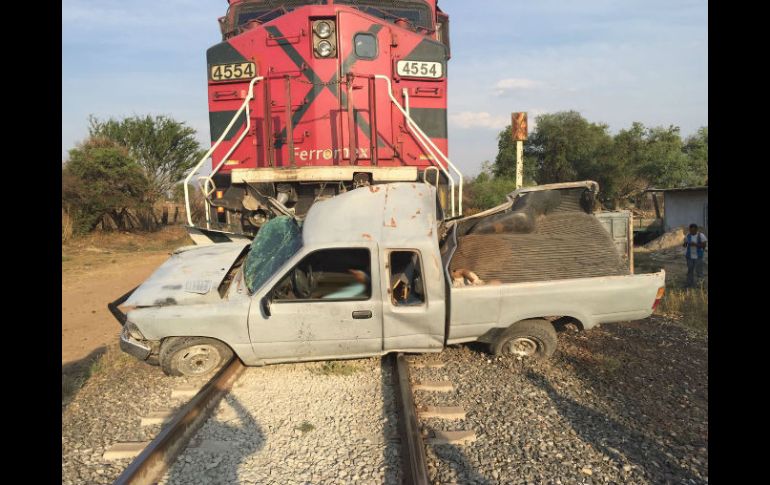 Jalisco | El accidente fue cerca de las 19:00 horas, cuando la camioneta intentó ganarle el paso Mueren dos en choque contra tren en Tlajomulco El accidente ocurrió poco después de las 19:00 horas, cuando la camioneta intentó ganarle el paso al ferrocarril Por: EL INFORMADOR 9 de abril de 2016 - 20:11 hs En el interior del vehículo se hallaban dos personas sin vida; y en la caja de la camioneta, un perro muerto. EL INFORMADOR / GUADALAJARA, JALISCO (09/ABR/2016).- La tarde de este sábado murieron dos personas tras impactar el vehículo en el que viajaban en contra de una máquina del ferrocarril en el municipio de Tlajomulco, al parecer, al intentar ganarle el paso, de acuerdo a información de las autoridades. Poco después de las 19:00 horas se alertó de un hecho vial en el cruce de camino viejo a Santa Cruz, al cruce con las vías del ferrocarril en La Cofradía, poblado de Santa Cruz de las Flores, en Tlajomulco. A la llegada de las unidades de rescate y de Servicios Médicos encontraron una camioneta pick up que fue tomada por su costado derecho por la máquina 4554 de Ferromex; en el interior del vehículo se hallaban dos personas sin vida; y en la caja de la camioneta, un perro muerto. Se pidió la presencia del Servicio Médico Forense para levantar los cuerpos de las personas y para la espera de la identificación oficial. Temas Seguridad Muertes Accidentes ferroviarios Policía de Tlajomulco Lee También Elementos de seguridad detienen a traficante sueco en Cancún Conmociones cerebrales, la cuarta lesión más frecuente en partidos de la Conmebol ¿De qué murió la actriz Diane Keaton? Sheinbaum ajusta su agenda para atender emergencia por lluvias Recibe las últimas noticias en tu e-mail Todo lo que necesitas saber para comenzar tu día Registrarse implica aceptar los Términos y Condiciones