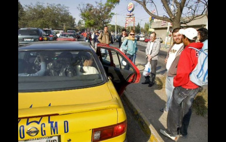 Jalisco | La sanción es por mil 160 pesos; unidades fueron retiradas de circulación Multan a 23 en Periférico por prestar servicios de taxi colectivo Vialidad montó un operativo en la arteria; están en la búsqueda también de carros particulares que funcionan irregularmente como autos de alquiler Por: EL INFORMADOR 10 de junio de 2011 - 13:50 hs No es una irregularidad que varias personas aborden un taxi con un mismo destino, y el chofer utilice el aparato de cobro. ARCHIVO / GUADALAJARA, JALISCO (10/JUN/2011).- Esta mañana, por prestar el servicio de taxi colectivo, a 23 choferes de autos de alquiler que operaban en Periférico se les aplicó una multa de mil 160 pesos (20 salarios mínimos), y la unidad fue retirada de circulación. Al anunciar que los operativos para detectar este servicio, que no está permitido por la norma, continuarán en Periférico y otras zonas de la metrópoli, el director Jurídico de la Dirección de Transporte Público de la Secretaría de Vialidad, Omar Ortega García, dijo que también están en la búsqueda de autos particulares que funcionan de manera irregular como si fueran coches de alquiler. Los operadores son multados por subir a varios usuarios, a quienes llevan a diferentes destinos, aplicando un cobro de cinco o 10 pesos por la “dejada”. En el caso de dos, tres o cuatro personas que acuerdan tomar un taxi con un mismo destino, y el chofer utiliza el aparato de cobro, no se incurre en una irregularidad, especificó el funcionario. Lamentó que sea una práctica común en zonas como Periférico la prestación del servicio de taxi colectivo, aunque también reconoció que los usuarios requieren una alternativa de transporte ya que las unidades de la ruta 380 pasan saturadas en hora pico. En ese sentido, dijo que pronto se planteará una solución. Otras zonas de la ciudad donde se tiene identificada la operación de coches de alquiler colectivos, son Santa Margarita y el área del TEC de Monterrey. En la Zona Metropolitana de Guadalajara operan alrededor de 12 mil taxistas de manera regular, mientras que el gremio señala la operación de un elevado número de unidades “piratas”. EL INFORMADOR / LETICIA FONSECA Temas Vialidad Taxistas de Jalisco SVyT Periférico Recibe las últimas noticias en tu e-mail Todo lo que necesitas saber para comenzar tu día Registrarse implica aceptar los Términos y Condiciones