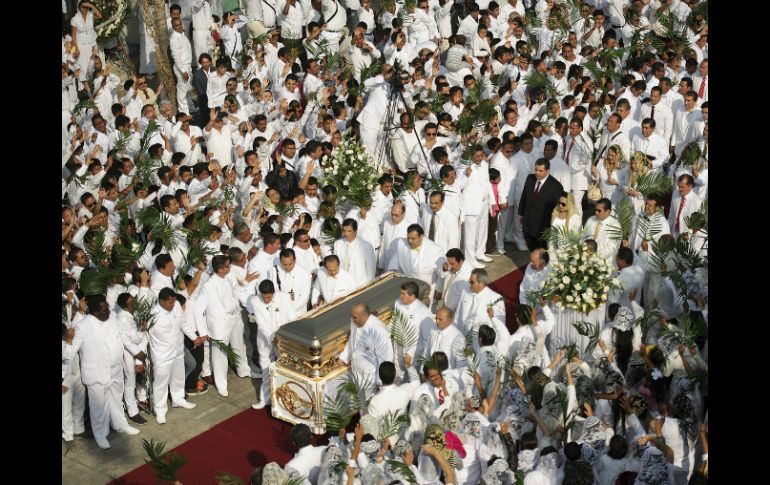 Jalisco | Cerca de medio millón de personas despiden a Samuel Joaquín Naasón Joaquín García relevará a su padre en la Luz del Mundo Cerca de medio millón de personas se dan cita para despedir los restos de Samuel Joaquín Por: EL INFORMADOR 14 de diciembre de 2014 - 16:15 hs Vestidos de blanco y rezando plegarias en todo momento, los fieles honraron al líder de esta iglesia. EL INFORMADOR / J. Mendoza GUADALAJARA, JALISCO (14/DIC/2014).- La madrugada de este domingo, la Iglesia de la Luz del Mundo decidió transferir el apostolado de Samuel Joaquín Flores, finado el pasado 8 de diciembre; al hijo de éste llamado Naasón Joaquín García. De esta manera se concreta el relevo de la iglesia cuya sede internacional se afinca en la Hermosa Provincia, donde casi medio millón de personas se aglutinaron para despedir los restos de Joaquín Flores. Vestidos de blanco y rezando plegarias en todo momento, los fieles honraron al líder de esta iglesia, que recién había cumplido 50 años de apostolado desde que le fue transferida la responsabilidad de guiar a su grey. La iglesia de la Luz del mundo tiene presencia en 50 países y más de tres millones de fieles alrededor del globo. Una parte de esas personas atiborraron las calles de la zona oriente de la ciudad. Desde que se dio a conocer la noticia, los fieles fueron llegando y han utilizado las casas de otros "hermanos" para descansar y dormir. Los alrededores del centro de culto son calles que desde el lunes y martes han sido cerradas para el tránsito vehicular. Familias completas escucharon el mensaje de los ministros que honraban a Samuel Joaquín Flores. Armando Maya Castro, el vocero de la sede tapatía, dijo que la designación de Naasón Joaquín García fue el resultado de una oración continua, "la iglesia inició una jornada intensa de oración, la unidad, la fraternidad y el fervor que se dio a través de horas de oración. La iglesia suplicó que Dios manifestara a la persona que iba a dirigir. La madrugada se dio la respuesta de Dios a los corazones de muchos hermanos... Dios puso al frente de su iglesia a Naasón Joaquín García" El sucesor era ministro en la iglesia La Luz del Mundo en California. El vocero dijo que es razonable que haya muchas personas que no entiendan la "decisión soberana y exclusiva de Dios", en la designación del hijo. "A algunos les causa escándalo, porque no pueden aceptar que Dios tiene el derecho de escoger a quien él quiere y para lo que él quiere". A los funerales que iniciaron el lunes pasado han asistido funcionarios de los tres órdenes de gobierno. En la última vuelta al recinto, acompañaron el féretro los alcaldes de Guadalajara y Tonalá, Ramiro Hernández García y Jorge Arana Arana, respectivamente. EL INFORMADOR / OMAR GARCÍA Temas Religión Municipios La Luz del Mundo Lee También Sociales: El Informador inicia una nueva etapa con la moderna imprenta "Doña Stella" La gran reunión mágica Romería: Los kilómetros al ritmo de la fe Pronostican lluvia para Guadalajara este jueves 9 de octubre Recibe las últimas noticias en tu e-mail Todo lo que necesitas saber para comenzar tu día Registrarse implica aceptar los Términos y Condiciones