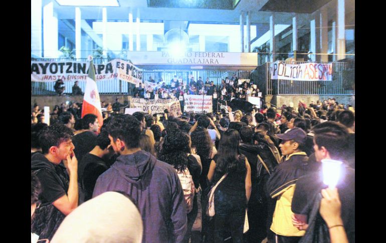 Jalisco | Normalistas de Atequiza encabezan la marcha por el esclarecimiento de los '43' 'No debemos claudicar; Ayotzinapa vive': estudiantes Los inconformes recuerdan las matanzas de Acteal, de Atenco y la violencia en todo el país Por: EL INFORMADOR 21 de noviembre de 2014 - 03:28 hs Contingente. Los inconformes, afuera del Palacio Federal, en el Centro de Guadalajara. EL INFORMADOR / A. Hinojosa GUADALAJARA, JALISCO (21/NOV/2014).- Contaron: uno, dos, tres, cuatro, cinco… y así, hasta 43. Retumbó en más de cinco mil voces de estudiantes y ciudadanos en general, según la Secretaría de Movilidad, quienes se manifestaron para exigir que se esclarezca la desaparición de los 43 estudiantes de la Normal de Ayotzinapa, en Guerrero. El jueves se conmemoró un aniversario de la Revolución Mexicana, y los ciudadanos salieron a hacer la propia en contra de la violencia, la impunidad y mal Gobierno que, dicen, México padece actualmente. “El color de la sangre jamás se olvida”; “Lucha, lucha, lucha, no dejes de Luchar”; “Vivos se los llevaron, vivos los queremos”, fueron algunas de las consignas que, encabezadas por los estudiantes de la Normal de Atequiza, se oyeron en el Centro de Guadalajara. El contingente salió alrededor de las 18:00 horas, del cruce de Federalismo y Avenida Juárez. De ahí caminaron por ésta última con pancartas, consignas y cartulinas. Llevaron su voz, la que “no se calla y no se rinde”, gritaban los presentes, entre los que estaban estudiantes de la Universidad de Guadalajara (UdeG), del ITESO, la Normal de Atequiza, el movimiento #Yosoy132, Bases Magisteriales y otras asociaciones. Marcharon por Juárez y por Alcalde, donde decenas de personas se les fueron uniendo, y otras, dueños o trabajadores de negocios de la zona, sólo observaban, tomaban fotos, preguntaban quiénes eran o gritaban lo mismo que los que caminaban. Llegaron a Palacio Federal, donde se instalaron y colocaron mantas que decían “Ayotzinapa es México, hasta encontrarlos; no están solos”, al mismo tiempo que gritaban consignas en contra del Presidente de México, Enrique Peña Nieto, a quien le exigen que renuncie. Señalaron que Ayotzinapa no es un caso aislado, pues “no se olvidan las matanzas de Acteal, de Atenco, la violencia en todo el país, los muertos, las ejecuciones”. Luego de más de dos horas y media, el contingente se dispersó. PARO LABORALTelefonistas se unen a la causa Alrededor de mil personas del Sindicato de Telefonistas de la República Mexicana, se concentraron en la Plaza de Armas, en el Centro de Guadalajara, para alzar la voz en contra de las desapariciones de 43 estudiantes de Ayotzinapa. Pasado el mediodía, los telefonistas salieron de la calle Félix Palavicini en su cruce con Avenida prolongación Alcalde, hacia Palacio de Gobierno estatal. Minutos después de llegar, los agentes de Movilidad liberaron la avenida Alcalde. Luego de caminar por la avenida Alcalde, se concentraron en la Plaza de Armas, donde Humberto García Jiménez, secretario general de la Sección Dos del Sindicato de Telefonistas, dirigió al contingente y anunció que los tres mil 200 empleados en Jalisco hicieron paro laboral, para unirse a la protesta nacional contra la violencia. Temas Manifestaciones en Jalisco Municipios Guerrero Desapariciones y denuncias Recibe las últimas noticias en tu e-mail Todo lo que necesitas saber para comenzar tu día Registrarse implica aceptar los Términos y Condiciones