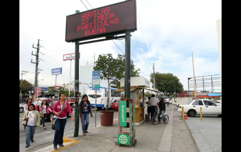 Jalisco | Entran en función desde el pasado sábado, informa Semadet Operan pantallas informativas sobre calidad del aire La Semadet informa que pantallas informativas sobre calidad del aire entraron en función desde el pasado sábado Por: NTX 4 de junio de 2013 - 08:29 hs Los horarios en los que se reporta información es de 7:00 a 22:00 horas. ARCHIVO / GUADALAJARA, JALISCO (04/JUN/2013).- La Secretaría de Medio Ambiente y Desarrollo Territorial (Semadet) dio a conocer que desde el pasado sábado entraron en operación las pantallas informativas sobre la calidad del aire. Indicó que la población en general puede mantenerse informada a través de las pantallas acerca de la calidad del aire que prevalece en la Zona Metropolitana de Guadalajara, a través del Sistema de Monitoreo Atmosférico Jalisco (SIMAJ), para tomar las medidas preventivas correspondientes. Agregó que los horarios en los que se reporta información a través de las pantallas automáticas de La Normal, Plaza del Sol y Zapopan, es de 7:00a 22:00 horas; mientras que las pantallas manuales como la de Glorieta del Charro, Loma Dorada y Miravalle, reportan información de 8:00a 15:00 horas. Puntualizó que se trabaja para que a corto plazo se minimicen las salidas de operación por fallas eléctricas de las pantallas informativas. Temas Municipios Contaminación ambiental en Jalisco Semadet Lee También Morena Jalisco respalda Reforma Judicial Comienza en Jalisco la Campaña Nacional de Vacunación de invierno Charros de Jalisco buscará frenar su racha negativa en juegos inaugurales de la LMP Autos con estas placas deben realizar la Verificación Vehicular antes del 31 de octubre Recibe las últimas noticias en tu e-mail Todo lo que necesitas saber para comenzar tu día Registrarse implica aceptar los Términos y Condiciones