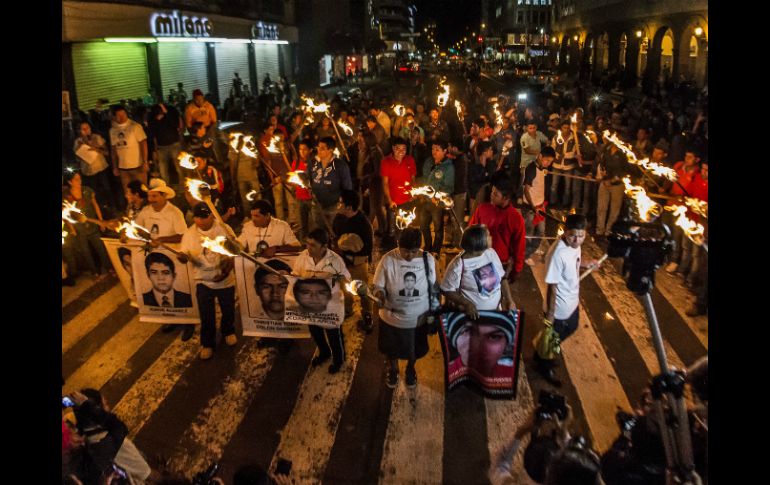 Jalisco | Prendieron 43 antorchas en la Avenida 16 de septiembre en honor a los desaparecidos Padre de normalista no pierde la esperanza Los manifestantes prendieron antorchas en la Avenida 16 de Septiembre en honor a los desaparecidos Por: EL INFORMADOR 18 de noviembre de 2014 - 21:33 hs La caravana marchó por avenida Alcalde hasta llegar a la Plaza de Armas. EL INFORMADOR / A. Hernández GUADALAJARA, JALISCO (18/NOV/2014).- Tranquilo, educado y paciente. Tenía dos meses de haber ingresado a la Escuela Normal Rural de Ayotzinapa. Originario del municipio de Juan R. Escudero, Jorge Álvarez Nava, también conocido como "El Chabelo", es el menor de cuatro hermanos y quiere ser maestro. Es importante que de él se hable en tiempo presente, puesto que hasta que no se pruebe lo contrario, su familia lo da por vivo. Y lo quiere de regreso. En esta ocasión, Jorge Álvarez no puede expresarse por sí mismo. Son sus padres quienes hablan en su nombre. Porque a sus 19 años, su vida en el campo de Guerrero se convirtió en noticia nacional. Su familia y millones de mexicanos lo buscan con desesperación. A él y a sus 42 compañeros que siguen desaparecidos. Su padre padre lo vio 15 días antes del fatídico 26 de septiembre, cuando policías municpales de Iguala balacearon los camiones donde viajaban los estudiantes, se llevaron a algunos de ellos consigo y los entregaron a sicarios del crimen organizado. Antes de eso, Jorge había llevado una vida apacible. "Él estaba contento. Estaba feliz", dice su padre, Epifanio Álvarez, un campesino guerrerense de habla rápida, cuando recuerda los últimos momentos que vivió con su hijo. "Pero pues pasó esto y desgraciadamente lo estamos viviendo". Junto con su esposa, Epifanio Álvarez decidió alzar la voz por su hijo participando junto con otros padres de familia en la brigada de Justicia para Ayotzinapa. "Ha sido un poco cansado, sobre todo por los cambios de clima... estamos enfermos", dice sobre su recurrente tos. Los padres y estudiantes muestran con las miradas caídas y el andar pausado, los estragos tras jornadas maratónicas de visita en Chihuahua y Zacatecas, escuchando una y otra vez la historia de cómo les arrebtaron a sus muchachos. Epifanio se aclara la garganta. Tiene los ojos algo enrojecidos. "Nos sentimos muy contentos por el apoyo de la gente", dice al tiempo que una mujer se le acerca para abrazarlo. A pesar de su apuro, Epifanio no se cansa de agradecer a las personas que se toman el tiempo de asistir a las marchas, de ayudar con sus gastos, de manifestarle su solidaridad. Corre para encontrarse con su esposa, con quien caminará codo a codo por Avenida Alcalde, exigiendo que ya termine la tristeza más grande sus vidas. CRONOLOGÍA 10:30 Normalistas de Atequiza toman la caseta de Ocotlán en la Autopista Guadalajara-Morelia, exigiendo una cuota a automovilistas. 15:00 La caravana de Justicia para Ayotzinapa, compuesta por padres de familia y estudiantes de la Escuela Normal Rural en Guerrero, llega al Centro Universitario de Ciencias Sociales y Humanidades (CUCSH), donde ofrecen una rueda de prensa y entablan diálogo con medios de comunicacion. 16:00 Comienza el encuentro entre la comitiva y la sociedad civil con la participación del rector del CUCSH, Héctor Raúl Solís, quien es recibido con abucheos. 18:00 Unas mil personas se congregan en la Glorieta de la Normal para dar comienzo a la marcha para exigir el regreso de los estudiantes. 19:00 El contingente arriba a 16 de septiembre y Avenida Juárez, donde prenden 43 antorchas en honor a los desaparecidos. EL INFORMADOR / BRENDA RAMOS Temas Manifestaciones en Jalisco Municipios Guerrero Desapariciones y denuncias Lee También Realizan toma de protesta del Consejo Directivo de la ANDDAPA Charros de Jalisco inaugura la temporada de invierno de beisbol Brenda Carrera rinde primer informe legislativo Tarde soleada para Guadalajara; no se descarta lluvia Recibe las últimas noticias en tu e-mail Todo lo que necesitas saber para comenzar tu día Registrarse implica aceptar los Términos y Condiciones