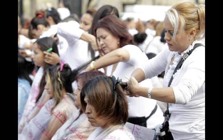Jalisco | Mil 257 peluqueros cortaron el cabello en menos de tres minutos a igual número de perso Peluqueros rompen récord en Plaza Liberación Mil 257 peluqueros cortaron el cabello en menos de tres minutos a igual número de personas Por: EL INFORMADOR 24 de noviembre de 2013 - 19:40 hs El mérito está en el número de ejecutantes y el tiempo. / GUADALAJARA, JALISCO (24/NOV/2013).- Mil 257 peluqueros mayormente de Jalisco establecieron un nuevo récord guinness, al cortar el cabello en menos de tres minutos a igual número de personas. La actividad transcurrió en la Plaza Liberación antes del mediodía. El mérito está en el número de ejecutantes y el tiempo. Joshua Rodríguez, organizador de "Most people cutting hair", dijo que antes ostentaron el récord colegas peruanos, con la participación de mil 050 estilistas. Aseveró que para obtener el nombramiento, sólo queda enviar la documentación a personal del récord y en febrero o marzo podría llegar el certificado al Ayuntamiento de Guadalajara. "El interés (en el récord) es que están trabajando ahorita en la certificación ante el Gobierno federal, para que el diploma que ellos adquieran tenga una validez para poder trabajar en el extranjero", explicó Rodríguez. Laura Ambriz Valencia, de 45 años de vida y unos 20 de peluquera, fue una de las que colaboró para lograr la marca. Ahora mismo trabaja en una estética de la Colonia Americana. Ella, que llevó a una amiga a la Plaza Liberación para el corte, ve a su oficio como una necesidad primaria. "Es como la comida". Con 17 años ya cortaba el cabello. Empezó con navaja y luego de manera autodidacta fue aprendiendo técnicas; experimentaba con su familia. Después estudió en una academia y empezó su tránsito por varios salones. "Me gusta mucho cortar el cabello". EL INFORMADOR / MIRIAM PADILLA Temas Ayuntamiento de Guadalajara Municipios Plaza Liberación Recibe las últimas noticias en tu e-mail Todo lo que necesitas saber para comenzar tu día Registrarse implica aceptar los Términos y Condiciones
