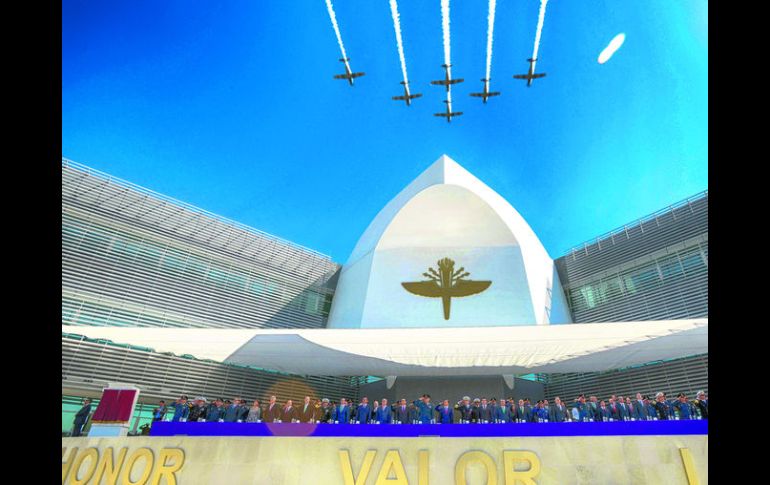 Jalisco | El mandatario inaugura las nuevas instalaciones del Colegio del Aire Peña Nieto festeja el centenario de la Fuerza Aérea El mandatario inaugura las nuevas instalaciones del Colegio del Aire Por: EL INFORMADOR 11 de febrero de 2015 - 03:45 hs GUADALAJARA, JALISCO (11/FEB/2015).- El Presidente de México, Enrique Peña Nieto, visitó Jalisco con la finalidad de conmemorar el primer Centenario de la creación de la Fuerza Aérea de México. En su visita a la Base Aérea Militar Número 5 en Zapopan, el Mandatario inauguró las instalaciones del Colegio del Aire en esta Entidad. Se trata de un inmueble cuya edificación se prometió desde el año pasado. En enero de 2014 el titular de la Secretaría de la Defensa Nacional (Sedena), Salvador Cienfuegos Zepeda, y el gobernador de Jalisco, Aristóteles Sandoval, dieron a conocer el proyecto que este martes se cristalizó. El entonces secretario de Gobierno y actual senador, Arturo Zamora Jiménez, explicó en aquella fecha que el inmueble que albergaba el Colegio sería un museo. Los recursos que se invirtieron para este proyecto provinieron de fondos federales. En su mensaje, el Presidente de México dijo que el país está en un proceso de cambio. Señaló que los resultados de las reformas generarán cambios de fondo. “México es un país grande y fuerte que ha decidido cambiar y este proceso de transformación hay que verlo en una perspectiva amplia en donde los logros y beneficios se irán sintiendo con el paso del tiempo en todos los hogares mexicanos. Los cambios de fondo permitirán que México sea una nación en ascenso que logre alcanzar nuevas alturas, ese es el país que entre todos construimos”, señaló. El Mandatario reconoció la labor de militares por su lealtad y servicio al pueblo mexicano y el combate en contra del crimen organizado. “Es una fecha de especial simbolismo, compartimos un merecido homenaje a esta institución militar por 100 años de servicio institucional, de valor patriótico, de lealtad a México”. Reconoció que las fuerzas armadas son un pilar de nuestra independencia y de la defensa de la soberanía nacional. Temas Gobierno de México Fuerza Aérea Enrique Peña Nieto Lee También Clima en Ciudad de México hoy: el pronóstico para el viernes 10 de octubre de 2025 Metro CDMX: Fecha en que abrirán todas las estaciones de la Línea 1 Esta es la verdadera identidad del "Juan Gabriel" captado en París t.A.T.u anuncia concierto en México: precio de boletos y cuándo salen a la venta Recibe las últimas noticias en tu e-mail Todo lo que necesitas saber para comenzar tu día Registrarse implica aceptar los Términos y Condiciones