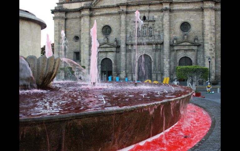 Jalisco | Se trata de un movimiento a nivel nacional Pintan fuente de rojo, como protesta contra la violencia Llaman a población a manifestarse contra los niveles de inseguridad. Por: EL INFORMADOR 23 de octubre de 2011 - 10:12 hs Esta mañana, la fuente sorprendió al estar pintada de rojo. ESPECIAL / GUADALAJARA, JALISCO. (23/ICT/2011).- La fuente ubicada en la Plaza Guadalajara, frente a la Catedral Metropolitana, en la Perla Tapatía, hoy luce diferente. Su agua no es clara; está teñida de color rojo, como parte de una protesta en contra de la violencia que se vive en el País. Mediante un comunicado, el movimiento “Fuentes rojas contra la violencia en el País”, anunció que la pinta de fuentes es una acción pacífica a nivel nacional, que de manera visual expresa el hartazgo y la urgencia de poner fin a la “terrible guerra que ha cobrado la vida de más de 55 mil personas, de los cuales 74 son trabajadores de los medios de comunicación, 13 mil desaparecidos y alrededor de 60 mil huérfanos”. La protesta consiste en teñir de color rojo las principales fuentes de diferentes ciudades a nivel nacional, con pintura vegetal biodegradable que, advierten, no produce daños en la estructura de cantera ni en el agua. En el caso de Guadalajara, por ser un foco de atención en todo el País por los Juegos Panamericanos, se eligió pintar una fuente del Centro Histórico de la Ciudad, que está a la vista de paseantes locales, nacionales y extranjeros. “Hacemos un llamado a la población en general a que manifieste su inconformidad contra los niveles de violencia e inseguridad que estamos padeciendo para que todos exijamos el alto a esta guerra que los ciudadanos no pedimos”, se indica en el comunicado enviado a este medio. Temas Seguridad Guadalajara Movimientos ciudadanos Lee También Regresa el calor este lunes a Guadalajara; se prevé lluvia Fiestas de Octubre 2025: cartelera por fecha en el Auditorio Benito Juárez Desapariciones: empatía abollada Cuando las cosas se hacen bien Recibe las últimas noticias en tu e-mail Todo lo que necesitas saber para comenzar tu día Registrarse implica aceptar los Términos y Condiciones