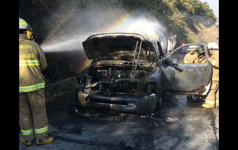 GUADALAJARA, JALISCO (11/ENE/2017).- Bomberos de Tlajomulco y Zapopan alertaron del incendio de una pipa de gas en la avenida Paseo del Palomar, en el fraccionamiento El Palomar.Esta tarde los elementos acudieron para sofocar el incendio, que podría haberse originado en la cabina y luego se extendió hacia los pastizales que rodean el camino debido a la inclinación del terreno.Rodrigo Arellano Estrada, director de Protección Civil de Tlajomulco, comentó que parecía que el incendio se debió a una falla mecánica del vehículo.No se reportaron lesionados, pero los elementos realizaron un cierre preventivo en la circulación mientras extinguían las llamas.