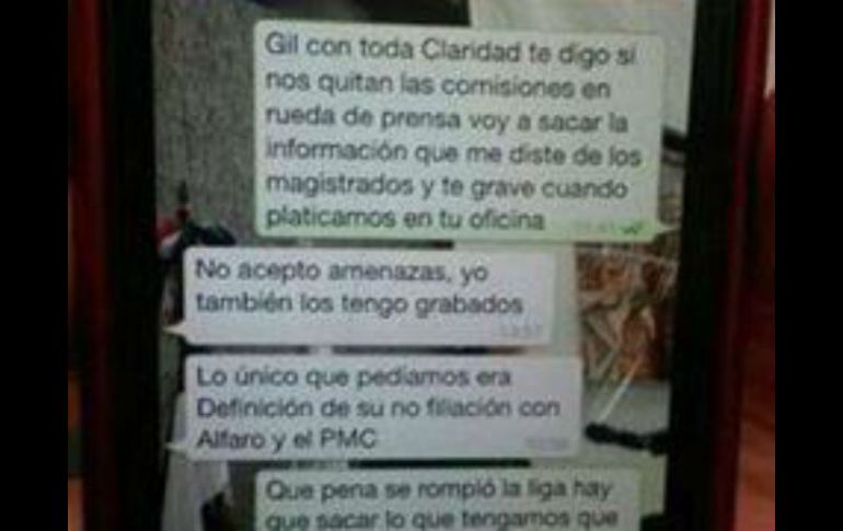 Jalisco | Martínez Mora y Alberto Esquer acusan de red de corrupción para elección de magistrados Pleitos entre panistas en el Congreso de Jalisco suben de tono Martínez Mora y Alberto Esquer acusan de red de corrupción para elección de magistrados Por: EL INFORMADOR 29 de mayo de 2014 - 19:36 hs Las conversaciones se dieron a conocer en redes sociales. ESPECIAL / GUADALAJARA, JALISCO (29/MAY/2014).- Las pugnas entre panistas en el Congreso no cesan. Los señalamientos del integrante G9, Guillermo Martínez Mora subieron de tono, ahora el legislador representante del distrito 10 acusó una red de corrupción al interior de su partido. Las pugnas entre panistas ahora tuvieron como escenario el pleno del Congreso local. De acuerdo con una conversación vía mensajes de texto telefónicos, que ventilaron Guillermo Martínez Mora y Alberto Esquer, que presuntamente sostuvieron Esquer Gutiérrez y el coordinador de la bancada panista, Gildardo Guerrero, los albiazules habrían negociado las candidaturas de los magistrados. En una primera conversación que hicieron pública se lee: ALBERTO ESQUER: Gil con toda claridad te digo si nos quitan las comisiones en rueda de prensa voy a sacar la información que me diste de los magistrados y te grave (sic) cuando platicamos en tu oficina... GILDARDO GUERRERO: no acepto amenazas, yo también los tengo grabados. GILDARDO GUERRERO: lo único que pedíamos era definición de su no filiación con Alfaro y el PMC. ALBERTO ESQUER: Que pena se rompió la liga, hay que sacar lo que tengamos que sacar. Suerte. GILDARDO GUERRERO: tú diste la palabra de discreción en ello. Por eso lo confié. Pero suerte yo grabe también toda esa plática. Existe una segunda conversación en la que se señala que dos presuntos panistas habrían conseguido concesiones de camiones, justo en medio de la discusión de la Ley de Movilidad en el Poder Legislativo, en julio pasado. GILDARDO GUERRERO: Ya viste quien nos quiere "vender" ahora? GILDARDO GUERRERO: HC si quiere la indexación!!! (Martínez Mora afirmó que HC se refería a Hernán Cortés). ALBERTO ESQUER: Quiere toda la Ley como está. ALBERTO ESQUER: Lo trae super acordado GILDARDO GUERRERO: Él tiene uno o dos camiones GILDARDO GUERRERO: Cocker tiene 3 (Martínez Mora señaló que ese es el apodo con el que los panistas conocen a Juan Carlos Márquez). GLDARDO GUERRERO: Hasta donde sé a Cocker se las dieron en la 58 (Legislatura) GILDARDO GUERRERO: Y a HC cuando fue presidente (municipal de Tlaquepaque). El líder de los diputados del PAN, Gildardo Guerrero desestimó las acusaciones, señaló que nunca escribió esos mensajes y advirtió que presentará una denuncia penal por falsedad de hechos y dichos en su contra. El líder de los diputados calificó como un fotomontaje la conversación divulgada por sus detractores. Sin embargo, Alberto Esquer retó al líder de los diputados a demostrar que el número del que salieron dichos mensajes no eran de él. En tanto, el diputado Hérnan Cortés dijo que estaba tranquilo y que no se siente aludido por los señalamientos de los panistas, Guillermo Martínez Mora y Alberto Esquer. Juan Carlos Márquez negó que su apodo sea "Cocker". Las acusaciones subieron de tono, cuando el integrante del llamado G9, Guillermo Martínez Mora utilizó la tribuna para acusar a Guerrero de ser "un mentiroso y farsante", la molestia del legislador fue el despido de una de sus colaboradoras Erika Andrade. Luego de fijar su posicionamiento, en tribuna Martínez Mora se refirió a la presunta de red de corrupción y distribuyó los mensajes de texto que supuestamente existen en el teléfono de Alberto Esquer. En medio de este conflicto panista, los diputados locales avalaron quitarle a Esquer Gutiérrez la representación del panista desde el Congreso en el Instituto Electoral y de Participación Ciudadana (IEPC), en su lugar quedó Elías Iñiguez. EL INFORMADOR / ZAIRA RAMÍREZ Temas Congreso local Corrupción PAN Jalisco Lee También Vinculan a mujer que explotaba sexualmente a su hija en Tlajomulco Detienen a sujeto por robo de motocicleta en Valle Real Por una ciencia social rigurosa Jalisco confirma 97 casos de sarampión; ocho en escuelas primarias Recibe las últimas noticias en tu e-mail Todo lo que necesitas saber para comenzar tu día Registrarse implica aceptar los Términos y Condiciones