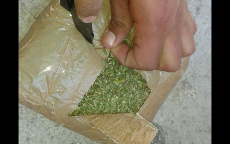 Jalisco | En diferentes hechos, elementos de la Fuerza única realizan el aseguramiento Policías estatales aseguran drogas en Amatitán y Mezquitic En diferentes hechos, elementos de la Fuerza única realizan el aseguramiento Por: EL INFORMADOR 3 de agosto de 2014 - 17:44 hs En una finca en Amatitán fueron localizados 210 kilogramos de mariguana. ARCHIVO / GUADALAJARA, JALISCO (03/AGO/2014).- En dos hechos diferentes, elementos de la Fuerza Única Regional (FUR) aseguraron mariguana y crystal, además de la detención de dos hombres que serían puestos a disposición de un agente del Ministerio Público de la Federación para ser investigados. Región Norte de Jalisco Dos hombres que circulaban a bordo de un taxi, en el municipio de Mezquitic, fueron detenidos debido a que fueron sorprendidos con 600 gramos de crystal. Se explicó, que los sujetos iban en un Nissan Tsuru con las placas de circulación 4181-GMF, por la vía que conduce de Mezquitic a Huejuquilla el Alto, a la altura del crucero a Nostíc, cuando fueron detenidos para ser sometidos a una revisión preventiva. Sin embargo, los sujetos trataron de escapar, pero fueron detenidos; el chofer del auto de alquiler dijo ser Víctor Alfonso Álvarez Ruiz de 29 años, el cual era acompañado por Ángel Silva Montoya, de 22 años. A Silva Montoya le fue asegurado fajado a la altura del abdomen con una venda elástica color blanco, un envoltorio de plástico transparente envuelto con cinta color canela y cinta aislante color negro, el cual contenía aproximadamente 600 gramos de la droga sintética. Región Valles En una finca del municipio de Amatitán, fueron asegurados 210 kilogramos de mariguana, pero los sujetos escaparon de los elementos de la Fuerza Única Regional. Se explicó, que los policías acudieron a una casa ubicada en las Paseo del Arriero y Paseo del Destilador, en la colonia Agaveros, ya que vecinos denunciaron la presencia de sujetos manipulando costales con mariguana. Dentro de la casa, fueron encontrados 12 costales y tres "ladrillos" en los cuales estaban la cantidad mencionada, la cual sería entregada a un agente del Ministerio Público federal. Temas Seguridad Detenidos en Jalisco Drogas Fuerza Única Jalisco Recibe las últimas noticias en tu e-mail Todo lo que necesitas saber para comenzar tu día Registrarse implica aceptar los Términos y Condiciones