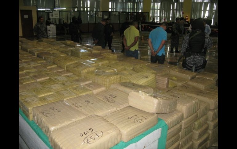 Jalisco | Hay tres detenidos Policías estatales aseguran más de cuatro toneladas de mariguana Los tres detenidos viajaban a bordo de dos camionetas y las que iban escoltadas por otro vehículo con sujetos armados Por: EL INFORMADOR 29 de noviembre de 2011 - 13:28 hs La droga decomisada estaba lista y empaquetada para ser distribuida. / TLAQUEPAQUE, JALISCO (29/NOV/2011).- En el municipio de Tlaquepaque elementos de la Policía Estatal lograron el aseguramiento de cuatro toneladas, 236 kilos, 310 gramos de mariguana, la cual ya estaba lista y empaquetada para ser distribuida. El aseguramiento se realizó tras la detención de Jorge Guillermo Tinajero Cárdenas de 26 años; Ismael Estrada Castro, de 27 años y Jorge Alberto Rosales Sandoval, cuando viajaban en dos camionetas con caja de refrigeración, las cuales iban escoltadas por una camioneta tipo Hummer en la que también viajaba uno de estos sujetos con un arma de fuego. Dicha captura se dio en Prolongación Gobernador Curiel a su cruce con privada Mezquite en la colonia Lomas del Cuatro en Tlaquepaque. Los detenidos, al ser cuestionados sobre el origen de la droga, dijeron dedicarse al comercio del estupefaciente y ser independientes de cualquier grupo delictivo. EL INFORMADOR / MARTÍN PATIÑO Temas Seguridad Decomisos de droga en Jalisco Ayuntamiento de Tlaquepaque Lee También Denuncia en su contra es para ocultar un fraude: Hermana de Omar "N" Protección Civil reabre el malecón de Puerto Vallarta Detienen a asesino de joven en partido de futbol ¿Cuál era la relación entre el barco pirata hundido en Vallarta y Colón? Recibe las últimas noticias en tu e-mail Todo lo que necesitas saber para comenzar tu día Registrarse implica aceptar los Términos y Condiciones