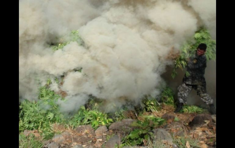 Jalisco | Autoridades localizaron los plantíos en Etzatlán, Amatitán y Hostotipaquillo Policías estatales destruyen plantíos de mariguana Autoridades localizaron los plantíos en Etzatlán, Amatitán y Hostotipaquillo Por: EL INFORMADOR 14 de abril de 2014 - 21:57 hs Elementos realizan la quema de mariguana, no hubo personas detenidas. ESPECIAL / GUADALAJARA, JALISCO (14/ABR/2014).- Elementos de la Policía del Estado destruyeron plantíos de mariguana en los municipios de Etzatlán, Amatitán y Hostotipaquillo, sin embargo, no realizaron detenciones de sembradores. La Policía estatal explicó que las plantas encontradas oscilaban entre 80 y 120 centímetros de altura. De acuerdo con lo informado, fueron localizados dos predios en Etzatlán, uno denominado Ahualulquito, en la delegación de El Trapiche, en donde se destruyeron 41 mil 200 plantas que estaban en una extensión de 10 mil 300 metros cuadrados, y el predio conocido como Santa Rosalía, en la delegación de San Antonio, fueron encontradas 22 mil 400 plantas en un terreno de cinco mil 600 metros cuadrados. Mientras que en el municipio de Amatitán, en un sitio denominado El Abra, en el ejido El Achio, ahí fueron quemadas 23 mil 200 plantas que estaban en un terreno de cinco mil 800 metros cuadrados; y uno más en la Barranca Las Huertas, del rancho Agua Fría, donde había 11 mil 400 plantas en un terreno de dos mil 850 metros. Por su parte, en terrenos del municipio de Hostotipaquillo, sobre el Arrollo las Juntas, en el rancho Plan de Barrancas, se destruyeron 82 mil 120 plantas en un terreno de 20 mil 530 metros. En este mismo municipio se encontró otro sembradío con seis mil plantas del enervante, que estaban en mil 500 metros cuadrados y uno más en el predio el Tempisque, otras 800 plantas que estaban en 200 metros cuadrados. Temas Seguridad Policía del Estado Mariguana Lee También México y Estados Unidos refuerzan cooperación en seguridad fronteriza Lemus afirma que no habrá impunidad desde el Estado en el caso de la detención de Nazario 'N' Intervención de la Policía de La Huerta, por posible desaparición forzada: Pablo Lemus Fuga de agua provoca cierre vehicular en López Mateos a la altura de La Calma Recibe las últimas noticias en tu e-mail Todo lo que necesitas saber para comenzar tu día Registrarse implica aceptar los Términos y Condiciones