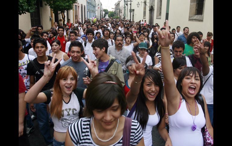Jalisco | Podemos hacer manifestaciones hasta por 100 días: FEU Preparatorianos salen de las aulas y toman las calles Ayer marcharon estudiantes de las ''prepas'' 2 y 3 exigiendo más recursos para la UdeG; hoy lo harán los de la 11 y 14 Por: EL INFORMADOR 31 de agosto de 2010 - 03:26 hs Cerca de dos mil estudiantes caminan por la calle Independencia gritando consignas en demanda de más dinero para la UdeG. A. GARCÍA / GUADALAJARA, JALISCO (31/AGO/2010).- Minutos después de las 09:00 horas de ayer, un contingente de dos mil preparatorianos comenzó a avanzar por la calle Industria-Independencia hacia el primer cuadro de la ciudad. Los estudiantes provenientes de las preparatorias 2 y 3 de la Universidad de Guadalajara (UdeG), caminaron hasta llegar al Palacio de Gobierno para exigir la entrega de 390 millones de pesos (MDP) extras para la casa de estudios. Después de gritar algunas consignas pidiendo ser recibidos por el gobernador, Emilio González Márquez, ingresó al recinto una comitiva integrada por el presidente de la Federación de Estudiantes Universitarios ( FEU), César Barba Delgadillo; el líder del Sindicato de Trabajadores Académicos (STAUdeG), Roberto López González; y los directores de las preparatorias 2 y 3, José Eduardo Castañeda Mendoza y Guadalupe José Torres Santiago, respectivamente. Alrededor de 15 minutos después, la comitiva salió del recinto. El líder feuísta, César Barba, dijo que autoridades del Gobierno del Estado cordialmente le informaron que el mandatario estatal no se encontraba en dicho lugar. Ante ello, Barba advirtió que las manifestaciones continuarán hoy con la movilización de las preparatorias 11 y 14, y dijo que la universidad tiene el material humano para hacer manifestaciones “durante más de 100 días seguidos”. Por su parte, el líder del STAUdeG, Roberto López González, aseguró que las mesas de trabajo entre el Gobierno estatal y la universidad, que se integraron en febrero pasado para llegar a arreglos en el tema del presupuesto, habían cumplido su función, pero descartó que puedan ser un nuevo vehículo para el diálogo. Agregó que salvo que el Consejo General Universitario disponga otra cosa, las autoridades de la casa de estudios no se reunirán con autoridades del Ejecutivo hasta que el gobernador no muestre “los cheques” por los 390 millones de pesos extras. Afectaciones menores En materia de vialidad, la Secretaría de Vialidad y Transporte (SVyT) informó que por la movilización estudiantil no se generaron mayores problemas a la circulación vehicular, ya que el contingente permaneció en la Plaza de Las Armas y no se cerró ninguna vialidad más que la calle Corona, por espacio de 40 minutos. TELÓN DE FONDODesfile de declaraciones y recursos El pasado miércoles, de forma sorpresiva, el gobernador del Estado, Emilio González, acudió a la Rectoría General de la UdeG a entregar un cheque por 100 millones de pesos (MDP), que dijo, provenían “del pueblo de Jalisco” y que servirían para incrementar la matrícula. Por la tarde de ese mismo día, el rector de la UdeG, Marco Antonio Cortés Guardado, aclaró que dichos recursos provenían de una bolsa federal de infraestructura etiquetada para las obras de la Biblioteca Pública del Estado, y reiteró que aún faltaban 390 MDP para completar los 520 millones que se requieren para cubrir las necesidades presupuestarias de la casa de estudios. Ayer domingo, el municipio de Zapopan aprobó la aportación de 60 MDP para continuar la inversión, con el carácter de fideicomitente original, del fideicomiso privado de administración y construcción del Centro Cultural Universitario. Por otra parte, el secretario general del Gobierno del Estado, Fernando Guzmán Pérez Peláez, garantizó que a los manifestantes se les dará “un trato institucional, conforme a Derecho”, pero insistió en que son innecesarias las protestas porque el tema de los recursos económicos se ha trabajado con responsabilidad, pero “cuando hay, hay; y cuando no hay, pues no hay”. REACCIONESEmilio lamenta que falten a clases Emilio González Márquez, el gobernador del Estado, se encontraba en una gira por el municipio de Chapala mientras acontecía la manifestación estudiantil. Ahí, además de reiterar que la UdeG esconde intenciones políticas en sus reclamos, lamentó que a unos días de haber iniciado el curso escolar, los alumnos ya estén faltando a clases: “Tantos jóvenes que quisieron entrar a la ‘prepa’, y los que apenas tienen una semana ya están perdiendo clases. El tiempo perdido no se recupera, se podrán recuperar las clases; pediría eso, que a los jóvenes no sólo les justifiquen la falta, no sólo les pongan el puntito en la lista de asistencia, sino también que les den la clase”. Que se pongan en paz: José María Martínez Los conflictos entre la UdeG y el Poder Ejecutivo deben terminar por el bien de los estudiantes, de los aspirantes a ingresar a la casa de estudios y por la estabilidad que requiere el Estado, consideró el coordinador de los diputados del PAN, José María Martínez, quien hizo un llamado a la cordura: “Es una situación que merece que se pongan en paz tanto un lado como el otro, y que resuelvan lo más pronto posible”. En cuanto a la solicitud de más recursos por parte de la universidad y la respuesta del Poder Ejecutivo que entrega dinero a cuentagotas, el panista pidió “entender y comprender la situación que se vive en cada una de las instituciones y a partir de ahí, que determinen si es viable o no mayor apoyo. Hasta donde sé, la posición del gobernador es que el apoyo ha sido factible por algunos ahorros y algunas gestiones que ha hecho ante el Gobierno federal. La parte de la UdeG asegura que tiene presupuesto escondido, eso último lo dudo mucho”. Temas Manifestaciones en Jalisco Pasado y presente de Jalisco Educación local Lee También Astros de Jalisco domina y empata la serie ante los Diablos Ro
