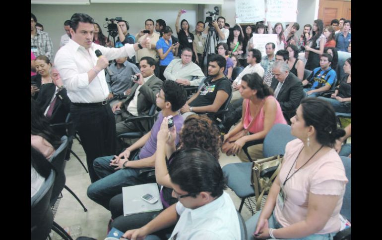 Jalisco | Aristóteles sostiene reunión con alumnos en una de las aulas de la universidad Protesta y diálogo en el ITESO Aristóteles sostiene reunión con alumnos en una de las aulas de la universidad Por: EL INFORMADOR 19 de mayo de 2012 - 02:35 hs Aristóteles Sandoval expone sus propuestas de Gobierno ante estudiantes del ITESO. ESPECIAL / GUADALAJARA, JALISCO (19/MAY/2012).- Las protestas de estudiantes del ITESO contra el candidato de la alianza PRI-PVEM al Gobierno de Jalisco, Aristóteles Sandoval, terminaron en un diálogo luego de que el abanderado tricolor convocó a los jóvenes que disienten con él a una plática. Cuando Aristóteles Sandoval tomó el micrófono para iniciar su participación en la III Cumbre de Comunicación Política, estudiantes reclamaron al candidato porque previamente había cancelado el diálogo con universitarios y porque asistió hasta ayer, cuando ya terminó el ciclo escolar. El candidato pidió respeto y dijo que había asistido para participar en la Cumbre, pero si querían, lo cancelaba para dialogar con ellos. “Nooo”, gritaron algunos de los asistentes, especialmente los de las primeras filas del Auditorio “Pedro Arrupe” que aplaudían al unísono. En la sesión de preguntas y respuestas, alumnos y académicos del ITESO pidieron que les explicaran por qué había tanto ambulantaje en Obregón, cuáles eran sus propuestas en ciencia y tecnología, movilidad, desarrollo económico, seguridad; su postura sobre la minería en Wirikuta y sobre la supuesta alianza Emilio-Alfaro, de la que acusan al candidato de Movimiento Ciudadano, tanto perredistas como priistas. Después de su participación en la Cumbre, sostuvo una reunión, en una de las aulas, con los jóvenes que protestaron por su presencia, entablando diálogo y exponiendo sus propuestas. En el tema de Movilidad, dijo que le apuesta a un modelo mixto y que cree en el modelo BRT, pero no el Macrobús. Los jóvenes pidieron otro diálogo. Aristóteles Sandoval dijo que él ya había ido al ITESO, que ahora a ellos les tocaba ir a donde él tendría encuentro con más jóvenes. FRASE"Me retroalimento y siempre he dicho que gobernaré con y para los jóvenes "Aristóteles Sandoval, candidato del PRI a la gubernatura. Temas Municipios PRI Jalisco PVEM Jalisco Aristóteles Sandoval Política en Jalisco Elecciones Jalisco 2012 Recibe las últimas noticias en tu e-mail Todo lo que necesitas saber para comenzar tu día Registrarse implica aceptar los Términos y Condiciones