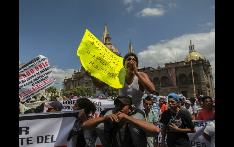 Jalisco | Los manifestantes provienen a municipios que cuentan con policías desarmadas Protestan contra Fuerza Única; amenazan con crear autodefensa Han tenido que cerrar varios negocios, lo que ha alejado al turismo de sus pueblos; amenazan con autodefenderse Por: EL INFORMADOR 12 de agosto de 2015 - 11:11 hs GUADALAJARA, JALISCO (12/AGO/2015).- Alrededor de 500 habitantes de los municipios donde la policía municipal ha sido desarmada, protestaron esta tarde a las afueras de Palacio de Gobierno para exigir al gobernador Aristóteles Sandoval que la Fuerza Única salga de sus poblaciones; amenazaron con crear grupos de autodefensa. "Queremos la supresión de la Fuerza Única, porque solamente han ido a nuestros municipios a violentar nuestros derechos, no nos han dado ningún beneficio", afirmó ''Érika'', habitante de Casimiro Castillo y una de las voceras de los manifestantes quien prefirió no dar su nombre. Precisó que se manifiestan ciudadanos de Unión de Tula, Villa Purificación, Autlán, Pihuamo, El Grullo, Jilotlán, Cocula y Casimiro Castillo. "La Fuerza Única nos ha pegado durísimo a la zona sur. Ya no tenemos turismo, ya no tenemos trabajo, hemos tenido que cerrar nuestros negocios y no tenemos comercio. Los jornaleros están asustados, ya no quieren sacar a sus vacas porque tienen miedo de que se las vayan a robar", afirmó Érika y aseguró que los ciudadanos son extorsionados por los elementos estatales. Por su parte, Saúl Alejandro Álvarez, otro de los manifestantes afirmó que los habitantes de los municipios donde opera la Fuerza Única están dispuestos a levantarse en armas y formar grupos de autodefensa si no se cumplen sus peticiones. "Son una bola de extorsionadores, mi familia maneja peleterías y nos pidieron un dinero quincenal para dejarnos operar. Ya estuvo bueno", afirmó. Una comitiva de los manifestantes fue recibida por Javier Lechuga, director de Desarrollo Político de la Secretaría General de Gobierno, para escuchar sus peticiones. Circuló un audio por medio de Whatsapp donde supuestamente se ofrecían 300 pesos a los manifestantes por asistir a la marcha. No ha sido confirmada su autenticidad. EL INFORMADOR / VIRGINIA ARENAS Temas Manifestaciones en Jalisco Gobierno del Estado Aristóteles Sandoval Autodefensa Fuerza Única Jalisco Lee También Cartucho Pablo Lemus y diputados mantienen diálogo sobre la reforma judicial Bosque de maple en Jalisco, el otoño más espectacular de México está aquí Mantendrán maiceros protesta en caseta de Ocotlán Recibe las últimas noticias en tu e-mail Todo lo que necesitas saber para comenzar tu día Registrarse implica aceptar los Términos y Condiciones