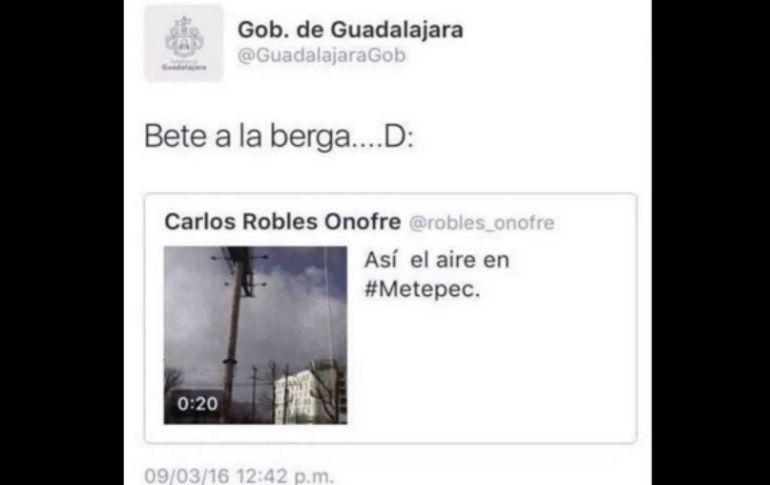 Jalisco | Intentaron controlar la situación con humor y sólo avivaron los comentarios Publican pifia en @GuadalajaraGob, se disculpan y generan más polémica Intentaron controlar la situación con humor y sólo avivaron los comentarios Por: EL INFORMADOR 9 de marzo de 2016 - 18:49 hs Imagen del mensaje que dio origen a la polémica, pese a ser borrado de la cuenta oficial del Ayuntamiento. ESPECIAL / GUADALAJARA, JALISCO (09/MAR/2016).- Un extraño mensaje se publicó en la cuenta de Twitter del Ayuntamiento de Guadalajara ( @GuadalajaraGob) este mediodía. Se trataba de una reacción a un clip de video difundido por el usuario @robles_onofre que mostraba el momento exacto en el que caía un espectacular en Metepec, Estado de México. En la cuenta oficial del gobierno tapatío alguien escribió "Bete a la berga..D:". De inmediato, otros usuarios reaccionaron al comentario hilarante y aunque fue eliminado del perfil el mensaje de disculpas de parte del Ayuntamiento avivó aún más la polémica por el mensaje fallido. "Alguien no tomó suficiente café esta mañana. Ofrecemos una disculpa por el error en el tuit anterior", así se disculpó el responsable de la cuenta una vez recuperada la organización de sus redes. Además el texto iba acompañado por un cómico GIF de un gato en una computadora. A esto siguió una oleada de comentarios, algunos que aplaudían el tono humorístico del control de daños, pero otros más que reprochaban ese estilo de disculpa. Fue tal el flujo de comentarios que 20 minutos después tuvo que haber un segundo mensaje aclaratorio de la cuenta oficial, de manera más ortodoxa: "Hablando en serio, ofrecemos una disculpa a nombre de @GuadalajaraGob por el tuit de nuestro CM que salió por error. Este medio es de uds". Uno de quienes criticó el episodio fue el regidor por el PRI, Ricardo Villanueva, quien en la misma red social difundió el siguiente mensaje: "Un error puede pasar a cualquiera pero un Ayto. no debe tomarlo a la ligera y hacerlo chiste. Gobernar es cosa seria". Los dimes y diretes sobre el desliz de la cuenta de @GuadalajaraGob ocasionaron que el concepto " Bete a la Berga" se colocara entre las 10 tendencias principales de Twitter a nivel nacional la tarde del miércoles. Algunas reacciones de los usuarios de Twitter @nubigis: No Corran al CM, @EPN dijo peores cosas en una FIL y es presidente. El CM nos hizo reír bastante, el otro nos hace llorar @jesusrosas: Por favor, nunca se mueran! que chida disculpa. #CafeinaNecesaria @AlexxMacias17: ¿Escribir mal no es por no tomar cafe o sí? #NoSabenEscribir @Mafecomunica: Por la naturaleza de esta cuenta siempre deberían hablar con seriedad, sin necesidad de aclarar cuando si y cuando no @SirUrban zE pAZan dEveRaZ Temas Ayuntamiento de Guadalajara Municipios Twitter Redes Sociales Lee También Ticketmaster tiene todos estos conciertos al 2x1 en Monterrey Viene por la tarde la tormenta a Guadalajara Así puedes comenzar tu ahorro en el Banco del Bienestar Ticketmaster tiene todos estos conciertos al 2x1 en Ciudad de México Recibe las últimas noticias en tu e-mail Todo lo que necesitas saber para comenzar tu día Registrarse implica aceptar los Términos y Condiciones