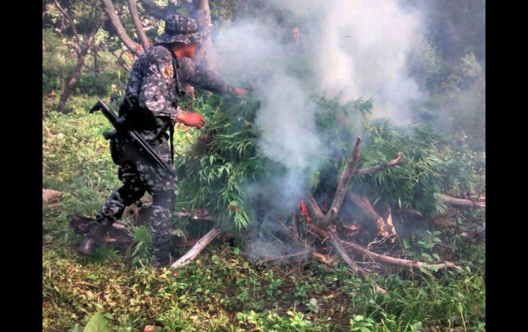 Jalisco | Según autoridades, se quemaron un aproximado de 22 mil plantas Queman plantíos de mariguana en Tequila y El Arenal Según autoridades, se quemaron un aproximado de 22 mil plantas Por: EL INFORMADOR 1 de septiembre de 2014 - 00:24 hs Durante los operativos para asegurar la droga no se detuvo a ninguna persona. ESPECIAL / TEQUILA, JALISCO (01/SEP/2014).- Miles de plantas de mariguana fueron quemadas por elementos de la Procuraduría General de la República (PGR) y de la Fuerza Única Regional, en los municipios de Tequila y El Arenal. En un comunicado de prensa por parte de autoridades estatales, se explicó que destruyeron seis plantíos en el municipio Tequila, donde había un aproximado de 22 mil plantas. Se explicó, que sembradíos fueron localizados vía aérea, y con base a investigaciones realizadas. Uno de las parcelas, fue localizada en un punto conocido como Cerro Viejo dentro del municipio de Tequila. Mientras que en el predio denominado El Novillero, en El Arenal localizaron otras tres extensiones de terreno de distintas medidas sembradas con el mismo enervante. La superficie total de los terrenos fue aproximadamente de cuatro mil 850 metros cuadrados, donde se localizaron aproximadamente 22 mil 700 plantas de mariguana, cuya altura aproximada era de los 160 centímetros. No hubo personas detenidas, ni se obtuvieron indicios de los dueños de los sembradíos. Temas Seguridad PGR Fuerza Única Jalisco Recibe las últimas noticias en tu e-mail Todo lo que necesitas saber para comenzar tu día Registrarse implica aceptar los Términos y Condiciones