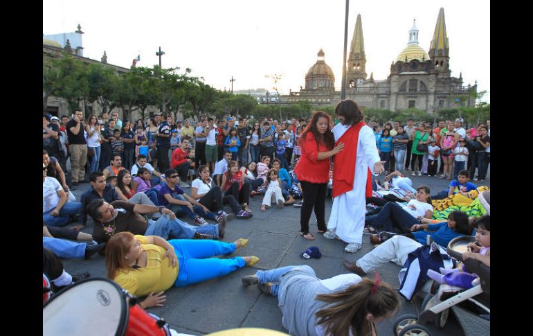 Jalisco | La Plaza de la Liberación del Centro tapatío, el escenario de la breve obra Realizan flashmob católico por la visita del Papa La breve obra presenta el mensaje de la acción de Jesucristo en acoger a las personas en situaciones de carencia extrema Por: EL INFORMADOR 18 de marzo de 2012 - 19:49 hs La realización de la obra se da en el contexto previo a la visita del Pontífice romano a México. / GUADALAJARA, JALISCO (18/MAR/2012).- La Plaza de la Liberación del Centro tapatío fue el escenario de una breve obra de teatro en el género del flashmob con la intención de motivar a la gente sobre el próximo viaje del Papa Benedicto XVI al Estado de Guanajuato. Uno los organizadores del montaje, el sacerdote Octavio Ramírez, comentó que la obra tuvo el mensaje de la acción de Jesucristo en acoger a las personas en situaciones de carencia extrema, lo que se mostró en una mujer desesperada que se exhibe con actitudes de angustia en lo que duró la representación del flashmob, en el que la figura de Jesús tuvo el protagonismo central. El presbítero explicó que de acuerdo con la dinámica de este género de teatro urbano, las obras tienen poca duración y su grupo pronto se dispersa, de modo que el impacto que se busca en involucrar a espectadores, se logra a través del apoyo de las redes sociales. De la misma manera, Livier Torres y Jorge Íñiguez comentaron que la realización de esta obra se da en el contexto previo a la visita del Pontífice romano, para destacar el papel de éste como representante de Jesucristo en la tierra. Estos dos jóvenes anticiparon que se irán a León en un grupo juvenil que se ha preparado, y que ya tienen los contactos y providencias necesarias para participar en la gran concentración humana del próximo domingo 25, en el parque del Bicentenario en Silao. EL INFORMADOR/ SALVADOR Y MALDONADO Temas Iglesia Católica en Jalisco Municipios .El Papa Benedicto XVI en México Lee También La aristocracia del Bienestar Así queda el tablero tras la turbulencia judicial Rentar casa: surrealismo tapatío Gentrificación de la Glorieta de los Desaparecidos Recibe las últimas noticias en tu e-mail Todo lo que necesitas saber para comenzar tu día Registrarse implica aceptar los Términos y Condiciones