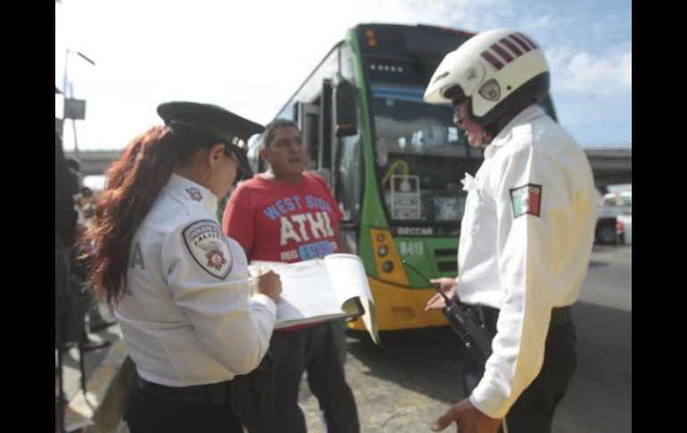 GUADALAJARA, JALISCO (24/MAR/2017).- Héctor Guerrero fue uno de los chóferes de la ruta 619 que esta mañana fue multado por subir pasaje en doble fila, esto durante un operativo de la Secretaría de Movilidad (Semov) en el cruce de Periférico y Colón; punto en donde el pasado martes un oficial de la Policía Vial resultó golpeado por dos personas.Antes de este hecho, un grupo de acomodadores de pasaje distribuían a los pasajeros en cinco filas para esperar su camión; sin embargo, no se pueden reconocer al no estar identificados como trabajadores de las rutas. Durante un recorrido, sólo se percibió a dos realizando esta labor.Aunque no hay una señalética, la ruta 619 tiene instrucciones de subir y bajar pasaje antes de la salida de la estación Periférico Sur, debido a que descienden e ingresan una gran cantidad de usuarios.Sin embargo, por las complicadas condiciones viales del lugar y el paso de más de siete rutas de transporte público es difícil respetar el sitio permitido para abordar pasaje, señaló Héctor Guerrero, conductor que tendrá que pagar una multa de 800 pesos."No es justo, otros camiones se paran aquí a subir pasaje. Yo no me pude detener atrás, porque ya estaba ocupado y me tuve que venir hasta acá. Vea, el camión está lleno y todavía quiere subir más gente", señaló.Otros chóferes consideraron que la lateral del Periférico Sur, frente a la estación del tren, no es suficiente para las siete rutas que deben de prestar el servicio, ya que también es utilizada por taxistas del Sitio 74 y conductores de Uber.En tanto, los usuarios del transporte consideraron que las peleas entre acomodadores de pasaje y choferes es una práctica común en el lugar, ya que se disputan por tener el mejor pasaje."En ocasiones los choferes se pelean por el pasaje. Un día estaban casi casi abajo del camión. Eso es común, porque hay mucha gente siempre aquí", relató Sergio Moreno, usuario de la ruta 619.En el transcurso del miércoles y jueves, la Secretaría de Movilidad multó a 52 chóferes de transporte público por subir pasaje en zonas restringidas.Asimismo, recogieron 23 licencias, ocho tarjetas de circulación y retiraron de servicio a dos unidades de la ruta 380, por no contar con los papeles requeridos, así como a un mototaxi.Mario Alberto González González, Inspector Jefe de la Semov, indicó que el refuerzo de cuadrillas de la Policía Vial permanecerá por tiempo indefinido hasta que se regule la situación en la zona."No pueden bajar ni subir pasaje en doble fila, poner vehículos en lugares no autorizados o zonas prohibida. Actualmente estamos revisando tanto a transporte público como autos particulares", puntualizó.52 sanciones a unidades de transporte públicoSe recogieron 23 licencias y ocho tarjetas de circulaciónSe retiraron dos unidades de la ruta 380 y un mototaxiRutas que transitan a las afueras de la estación Periférico Sur: 1-A, 380, 380-A, 619, 186, 176 y Chapala.EL INFORMADOR / FABIOLA HERNÁNDEZ