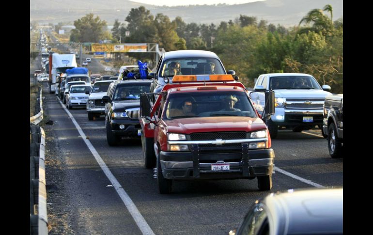 Jalisco | Miles de automóviles agolparon Prolongación López Mateos-Carretera a Morelia Regreso de vacacionistas satura ingresos carreteros a la ciudad Miles de automóviles agolparon arterias como Prolongación López Mateos-Carretera a Morelia y la vía a Nogales Por: EL INFORMADOR 25 de abril de 2011 - 03:38 hs Por carretera a Nogales rumbo a la ciudad, un automóvil con todo y familia adentro tuvo que ser auxiliado por una grúa. E. PACHECO / GUADALAJARA, JALISCO (25/ABR/2011).- Conforme avanzaba la tarde, la carga vehicular en los principales ingresos carreteros de la metrópoli fue en aumento. Al oscurecer, arterias como Prolongación López Mateos-Carretera a Morelia y la vía a Nogales eran transitadas por miles de automotores que trasladaban a los vacacionistas de regreso a casa. Sobre el retorno de los numerosos automovilistas, el director Operativo de la Secretaría de Vialidad y Transporte (SVyT), Felipe Prado Trejo, manifestó que tanto en carretera a Morelia como en la de Nogales “la circulación es cargada pero muy tranquila... Ahora está tranquila, hoy como que se les hizo tarde el retorno porque no ha sido como en otras ocasiones”. Agregó que el sábado se registró una afluencia considerable de vehículos ingresando a la metrópoli. Además, calculó que hasta la medianoche de ayer domingo, estaría cargada la circulación. En cuanto a la afluencia de automotores por Carretera a Chapala, reportó que la carga vehicular fue semejante a la de cualquier otro fin de semana. Respecto a incidencias, el funcionario informó que hasta alrededor de las 21:00 horas se tenía el registro de dos choques leves en Carretera a Morelia, uno involucró a dos vehículos; el otro percance, a tres. Estos accidentes los atendió la Policía Federal Preventiva. Queda una semana de vacaciones, pero se prevé que el próximo sábado y domingo sea más tranquilo el retorno de paseantes, según autoridades viales. “Este fin de semana es el fuerte”, indicó Prado Trejo. Temas Vialidad SVyT Periodo vacacional Recibe las últimas noticias en tu e-mail Todo lo que necesitas saber para comenzar tu día Registrarse implica aceptar los Términos y Condiciones