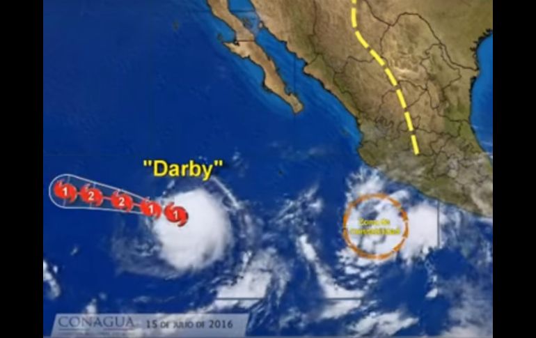 Jalisco | El huracán ''Darby'' permanece alejado de costas nacionales Reportan alta probabilidad de ciclón tropical en Colima Mantiene 90 por ciento de probabilidades de convertirse en ciclón tropical durante las próximas 48 horas Por: NTX 15 de julio de 2016 - 08:26 hs CIUDAD DE MÉXICO (15/JUL/2016).- La zona de inestabilidad, localizada cerca de las costas de Colima, mantiene 90 por ciento de probabilidades de convertirse en ciclón tropical durante las próximas 48 horas, informó el Servicio Meteorológico Nacional ( SMN). En su reporte más reciente, detalló que el fenómeno climático se ubicó a 585 kilómetros al sur-suroeste de Manzanillo, Colima, con desplazamiento al oeste a 18 kilómetros por hora, vientos máximos sostenidos de 35 kilómetros por hora y rachas de hasta 45 kilómetros por hora. A su vez, el huracán ''Darby'', categoría 1 en la escala Saffir-Simpson, se ubicó a mil 255 km al suroeste de Cabo San Lázaro, y a mil 300 kilómetros al suroeste de Cabo San Lucas, Baja California Sur. El meteoro se desplaza hacia el oeste a 19 kilómetros por hora, con vientos máximos sostenidos de 150 kilómetros por hora y rachas de hasta 185 kilómetros por hora. De acuerdo con el pronóstico, se espera que ''Darby'' alcance la categoría 2 de huracán en las próximas horas, sin que represente riesgos para el país. Pronóstico del clima para la Zona Metropolitana de Guadalajara De acuerdo con el Instituto de Astronomía y Meteorología de la Universidad de Guadalajara el clima será el siguiente: Zona metropolitana de Guadalajara. Amanece nublado con gotas ocasionales. En las primeras horas de la mañana lluvia ligera y aislada, al medio día nubes y sol. En la tarde de medio nublado a nublado. El viento dominante soplara del suroeste con rachas ocasionales. Probabilidad de lluvia en la madrugada. El tiempo se presentará poco caluroso durante el día, templado en la noche y fresco al amanecer. Temperatura mínima dentro de la CD. 16.0 º C Temperatura mínima fuera de la CD 16.0 º C. Pronostico para el fin de semana nubes, sol y lluvia. Temas Municipios Huracanes Temporada de lluvias SMN Colima Lee También Sube a 47 la cifra de fallecidos por fuertes lluvias en el país Suspenden clases en 41 municipios de Veracruz tras inundaciones SMN advierte lluvias y bajas temperaturas en México esta semana Morelos reporta siete muertos tras lluvias de las últimas horas Recibe las últimas noticias en tu e-mail Todo lo que necesitas saber para comenzar tu día Registrarse implica aceptar los Términos y Condiciones
