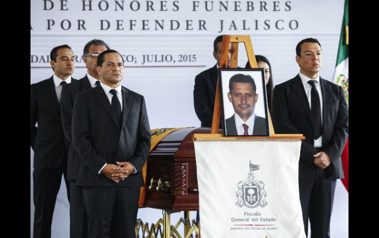 Jalisco | Familiares, amigos y autoridades dan el último adiós al elemento de la Fiscalía Rinden homenaje a comandante asesinado en Puerto Vallarta Familiares, amigos y autoridades de Jalisco dan el último adiós al elemento de la Fiscalía Por: EL INFORMADOR 19 de julio de 2015 - 18:49 hs López Lara, Almaguer y otras autoridades montaron una guardia de honor. SUN / J. Mendoza GUADALAJARA, JALISCO (19/JUL/2015).- Personal de la Fiscalía General del Estado realizó un sentido homenaje póstumo al comandante Óscar González Ortiz, quien murió la noche del viernes en Puerto Vallarta tras recibir cinco impactos de bala en el pecho, mientras se encontraba dentro de un establecimiento. En el evento, al que acudieron familiares, amigos, compañeros de trabajo, se encontraba el secretario general de Gobierno, Roberto López Lara y el fiscal de Jalisco, Eduardo Almaguer. López Lara expresó que González Ortiz cumplió con su labor y su compromiso de proteger a la sociedad jalisciense. Por su parte, Almaguer Ramírez expresó que “La partida de Óscar no es ni será en vano, ni la actividad ni en la vida de cada uno de los que hoy estamos como responsables de la seguridad de los jaliscienses, de nuestras familias, de nuestros hijos”. Durante las exequias, el secretario de Gobierno, el fiscal General y otras autoridades montaron una guardia de honor. Posteriormente el contingente para despedir a González Ortiz partió de las instalaciones de la Fiscalía General del Estado hacia el lugar donde serían depositados los restos del comandante. Temas Seguridad Puerto Vallarta Homicidio Eduardo Almaguer Ramírez Fiscalía de Jalisco (FGE) Roberto López Lara Lee También Detienen a presunto homicida en Lomas de Oblatos Puerto Vallarta es reconocida como la mejor ciudad pequeña de Latinoamérica Suspenden clases en estos 9 municipios de Jalisco ante el paso de tormenta tropical 'Raymond' Clausuran centro de rehabilitación en Tonalá por posibles delitos Recibe las últimas noticias en tu e-mail Todo lo que necesitas saber para comenzar tu día Registrarse implica aceptar los Términos y Condiciones