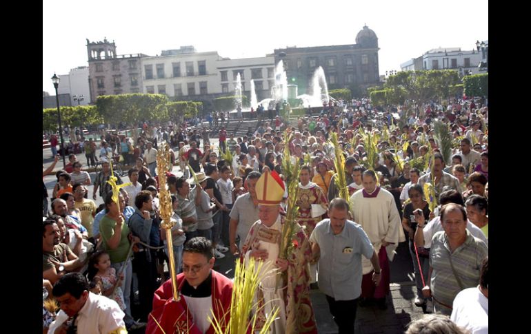 Jalisco | Pide entender el sentido de la celebración Sandoval Íñiguez exhorta a vivir la Semana Santa de acuerdo a la fe El cardenal hace la bendición de las palmas y parte en procesión desde el templo de La Merced hacia la Catedral Por: EL INFORMADOR 18 de abril de 2011 - 03:36 hs El cardenal presidió el inicio de la Semana Santa con una procesión de palmas del templo de La Merced a la Catedral. E. BARRERA / - El Papa inicia los ritos de la Semana Santa- Rivera pide combatir activamente la injusticiaGUADALAJARA, JALISCO (18/ABR/2011).- El arzobispo de Guadalajara, cardenal Juan Sandoval Íñiguez, presidió el inicio de la Semana Mayor para el catolicismo. Primero, el prelado hizo la bendición de las palmas en el templo de La Merced, de donde partió en procesión hacia la Catedral en compañía del cabildo diocesano. Ya en la Celebración Eucarística que tuvo en su liturgia los textos bíblicos de la Pasión de Jesucristo, el arzobispo tapatío, ataviado con ornamentos rojos según el ritual de la fecha del Domingo de Ramos, exhortó a los feligreses a una vivencia de la Semana Santa de acuerdo a las enseñanzas católicas. Hizo mención el jerarca religioso, que la Semana Santa es el tiempo propicio para entender el sentido de la redención por la Pasión y Muerte de Jesús de Nazaret, además de la necesidad de completar tal “misterio de fe”, de acuerdo a la enseñanza del mensaje del apóstol San Pablo. A pesar de un fuerte calor, la Catedral Metropolitana estuvo saturada de fieles, que en gran parte llevaban diversas figuras religiosas de palma trenzada, como custodias y relicarios. El arzobispo de Guadalajara se limitó exclusivamente a su mensaje religioso, sin aludir coyunturas de la vida secular, y sin tampoco dar entrevista a los medios de comunicación. Temas Iglesia Católica en Jalisco Municipios Semana Santa Juan Sandoval Íñiguez Lee También Empresarios esperan alza en generación de empleo Cartucho Desapariciones: empatía abollada ¿Sabrá el gobernador? Recibe las últimas noticias en tu e-mail Todo lo que necesitas saber para comenzar tu día Registrarse implica aceptar los Términos y Condiciones